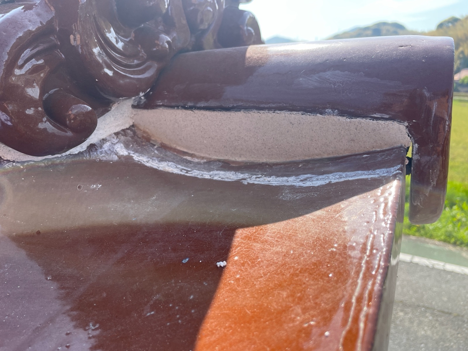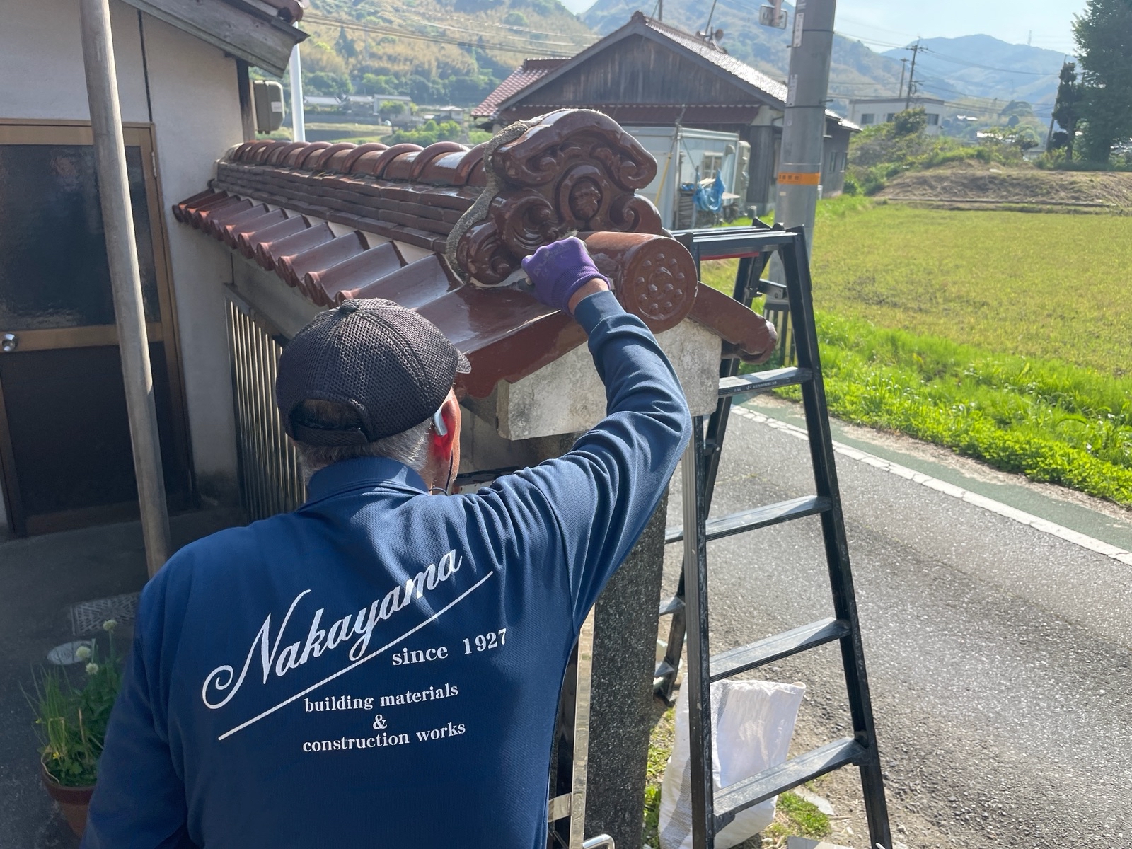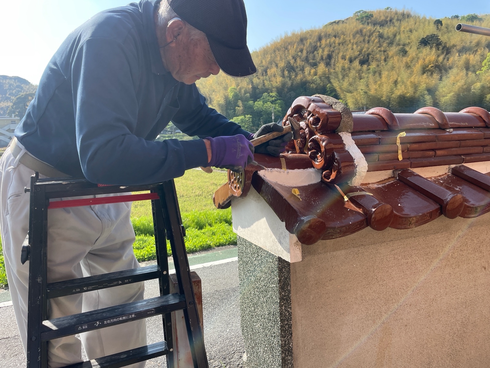 本日も塀の瓦部分の漆喰上塗り工事を行っております!