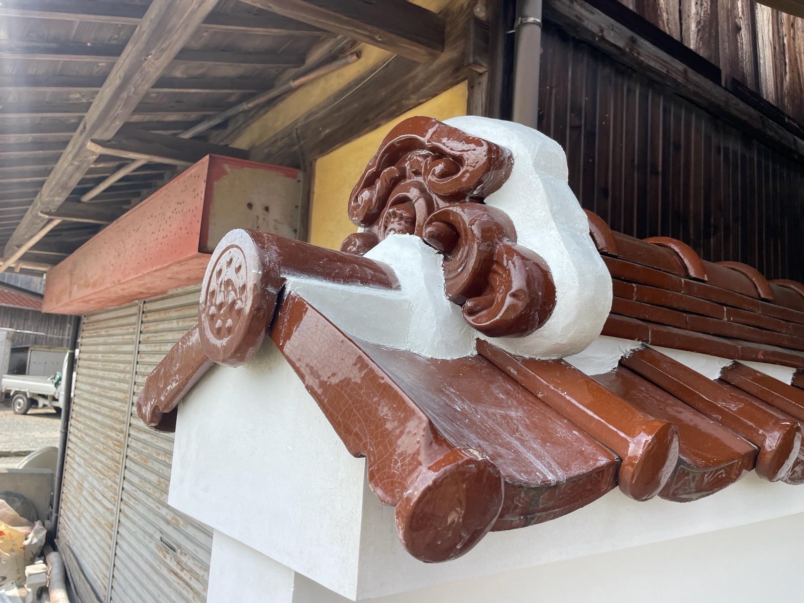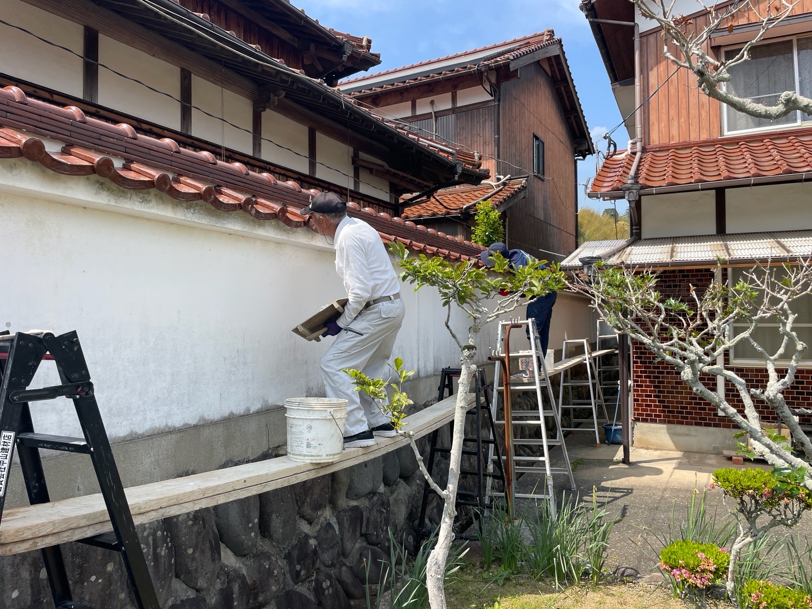 本日も塀の瓦部分の漆喰上塗り工事を行っております!