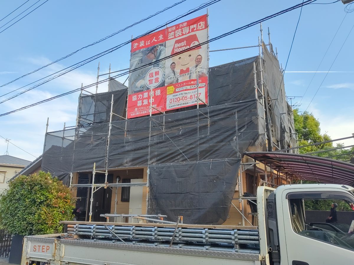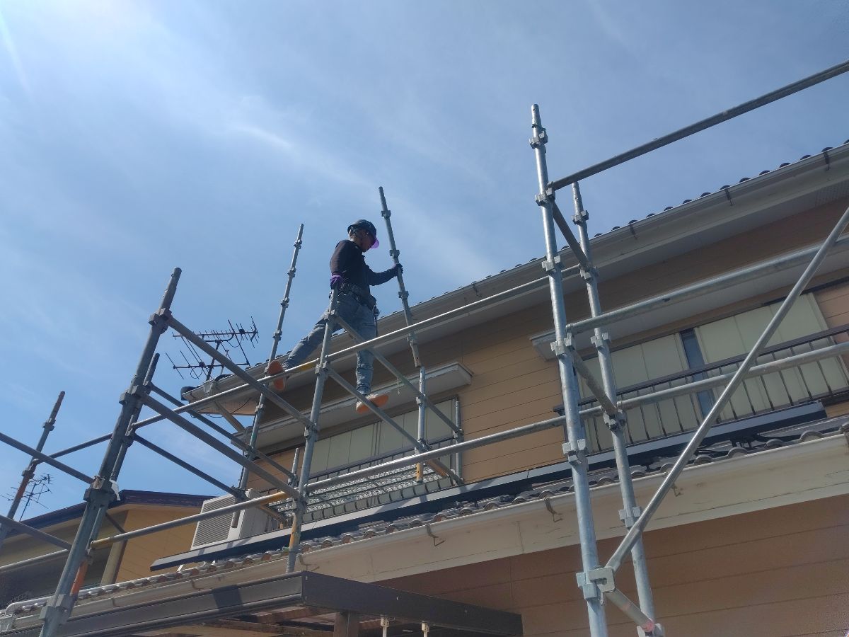 塗装工事の第一歩!足場組立をさせて頂いております!