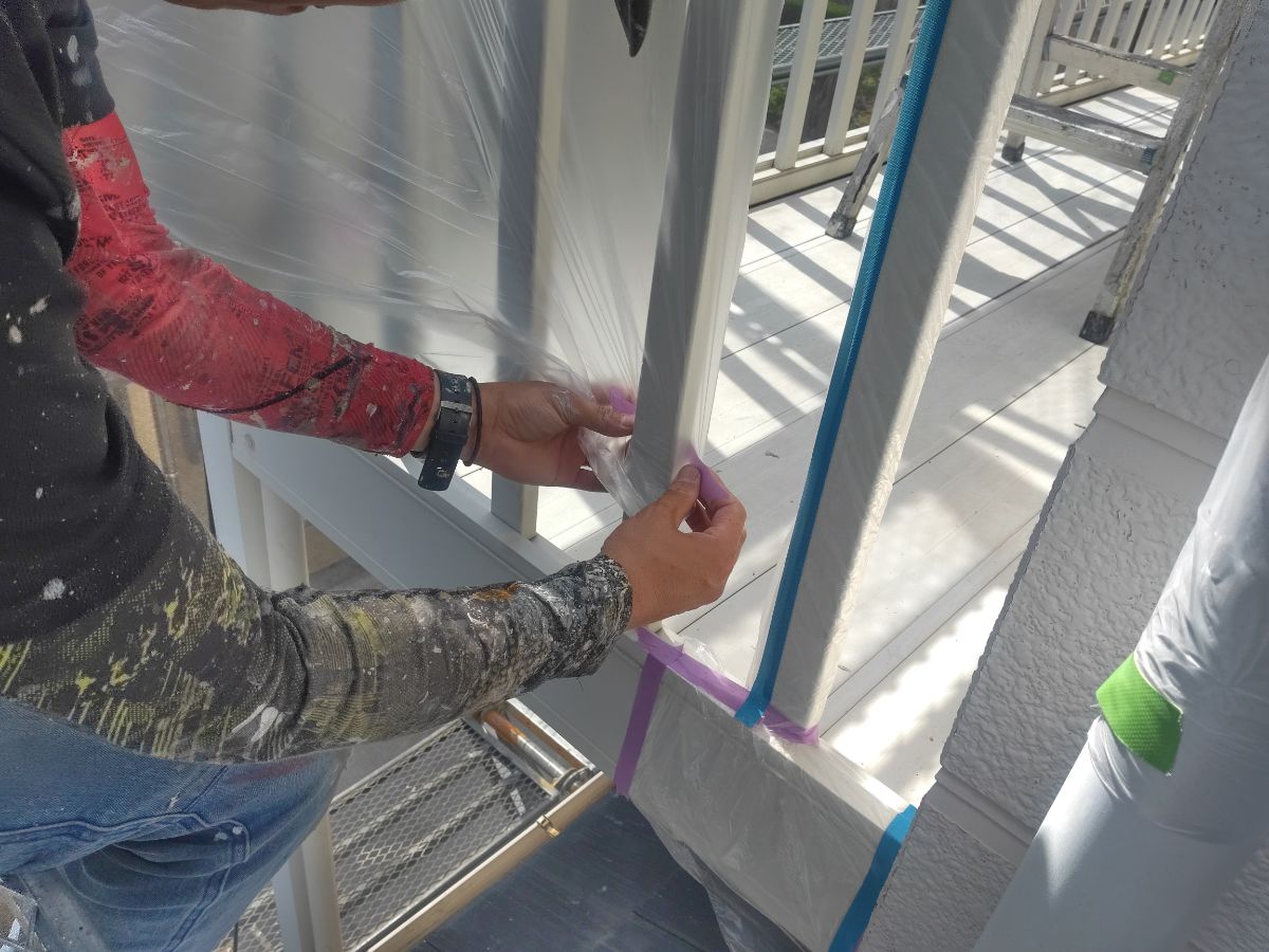 養生作業は、塗装しない面などをビニールで覆ったりする作業です!