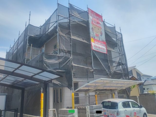 次回施工・・・養生(続き)、軒天塗装、外壁・屋根 下塗り