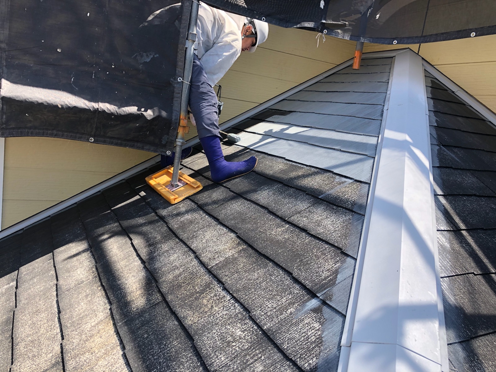 本日は下屋根の塗装を行っております!