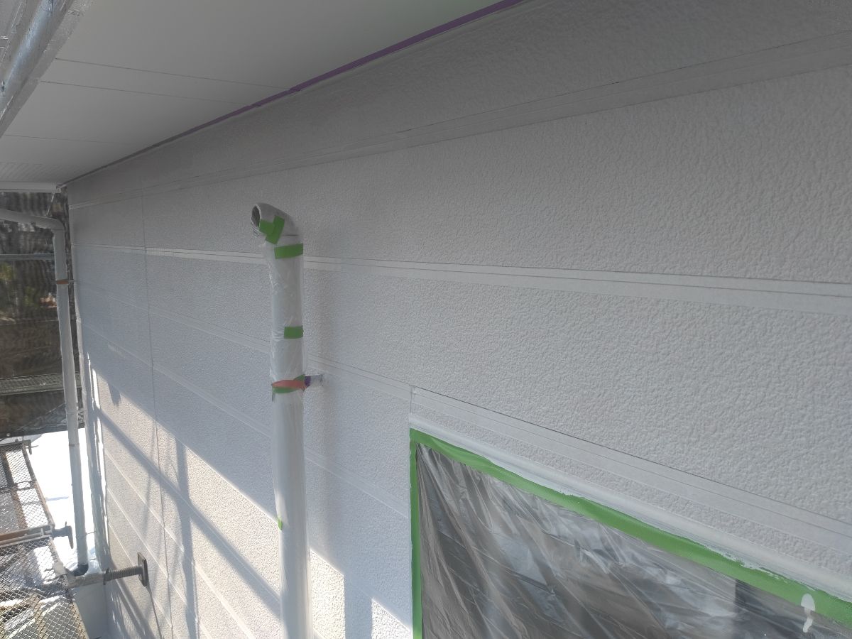 本日は、中間検査、外壁上塗り1回目、屋根上塗り1回目をさせて頂いております。