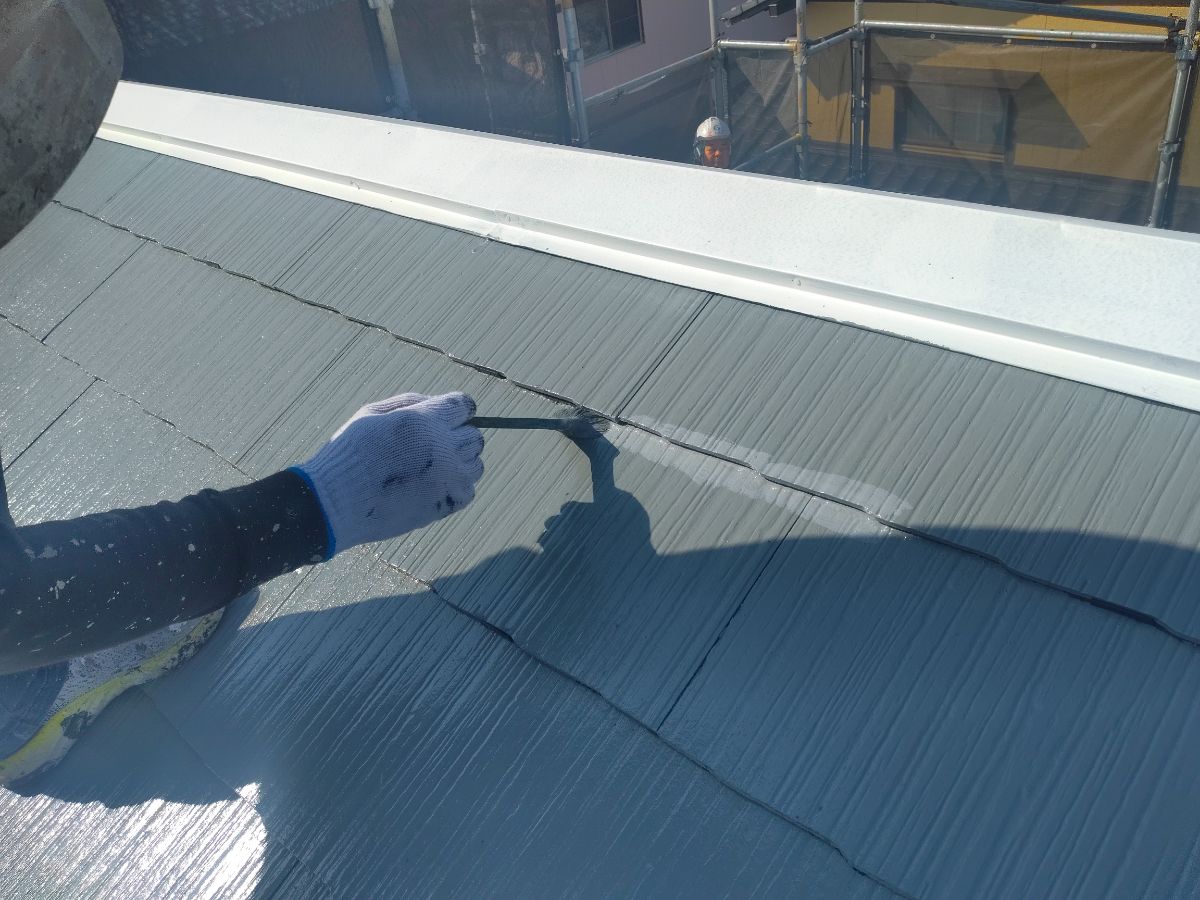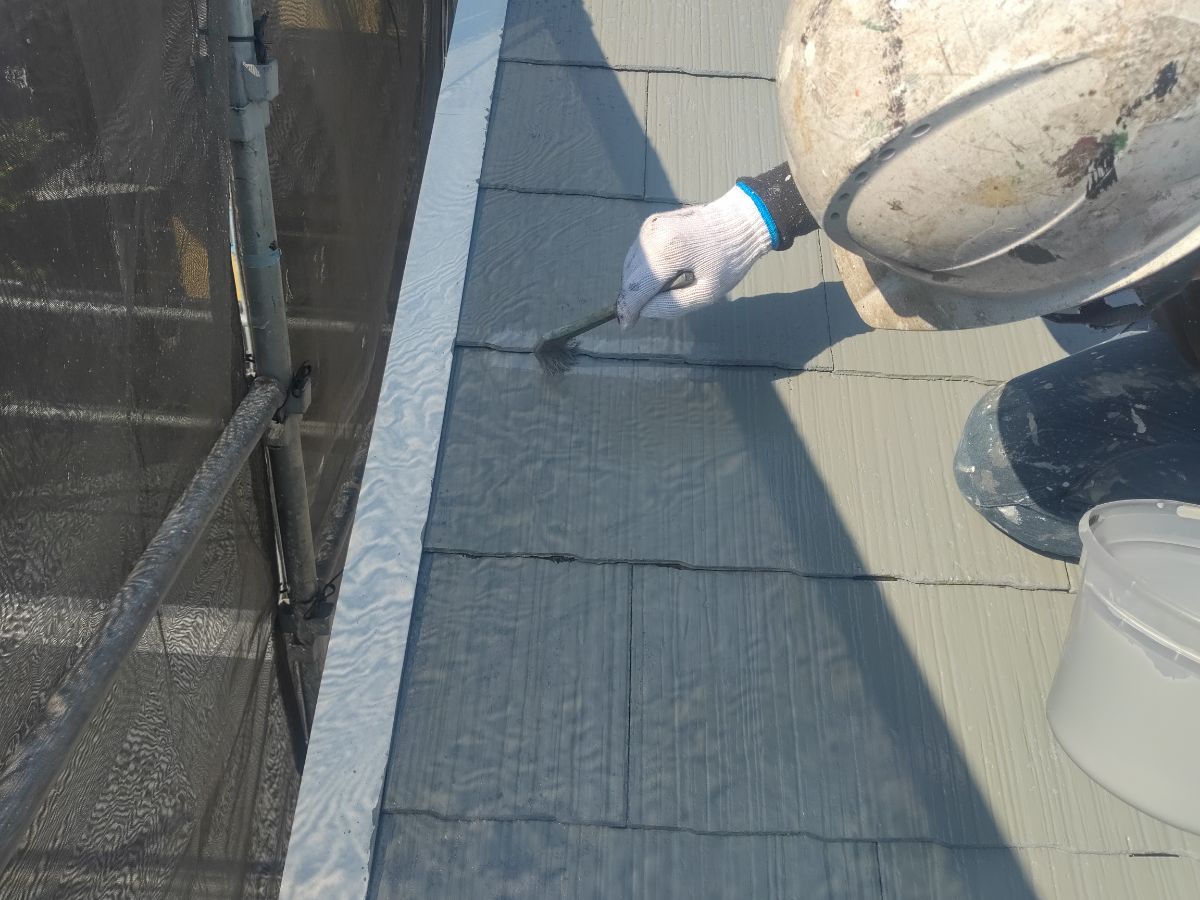 その後、外壁と大屋根の上塗り1回目を行っております!