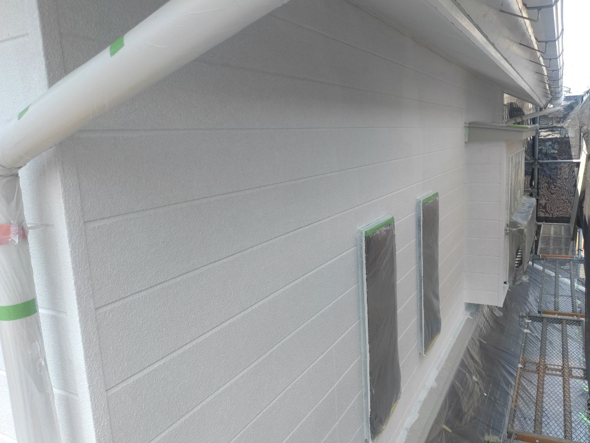 本日は、中間検査、軒天塗装、外壁(2階)上塗り1回目をさせて頂いております。