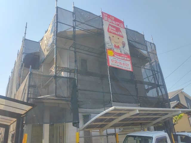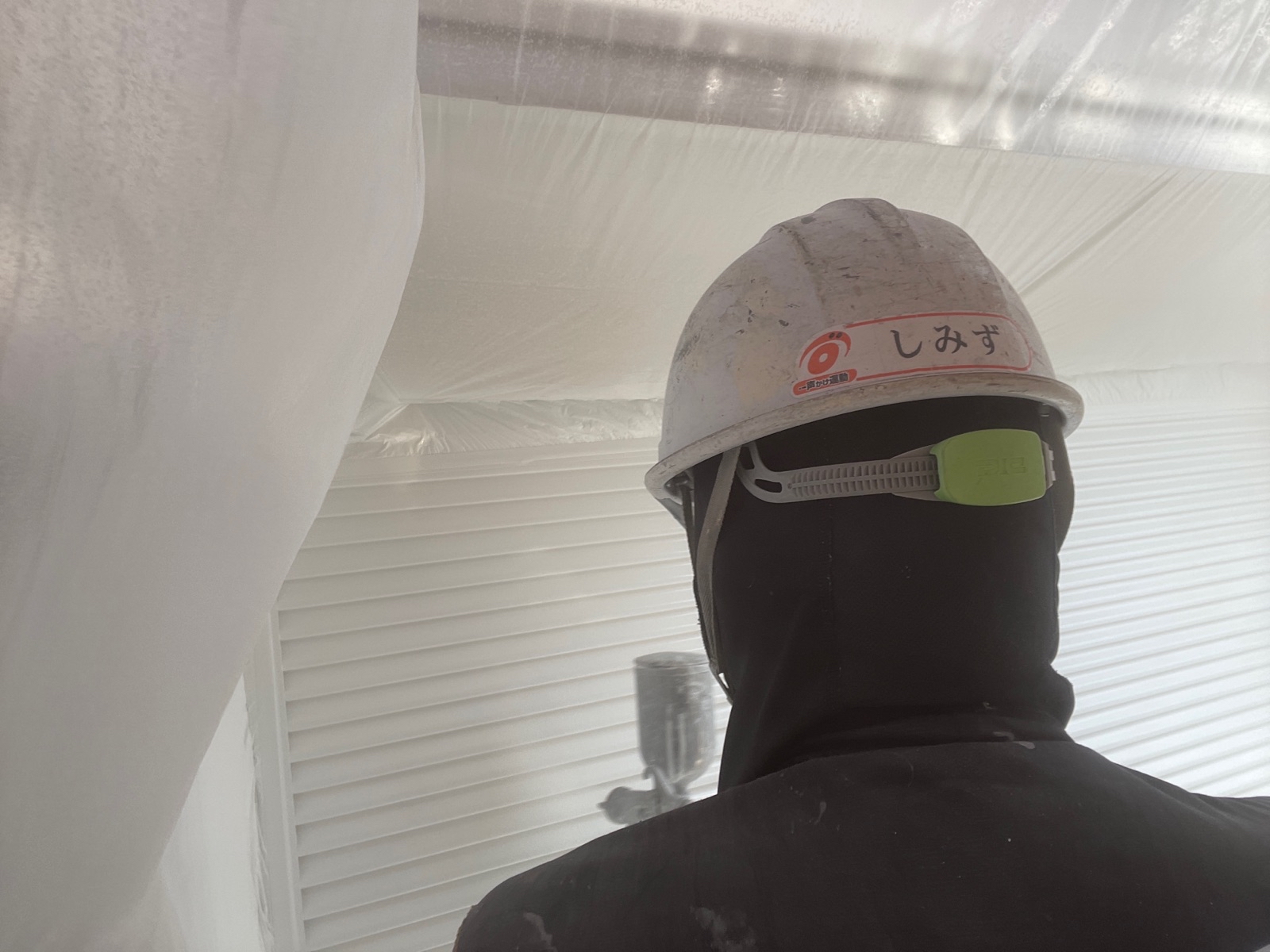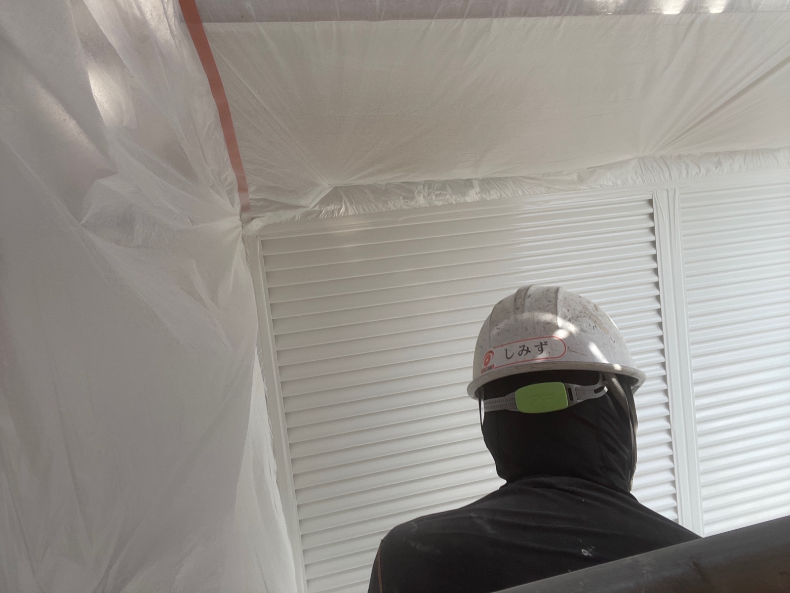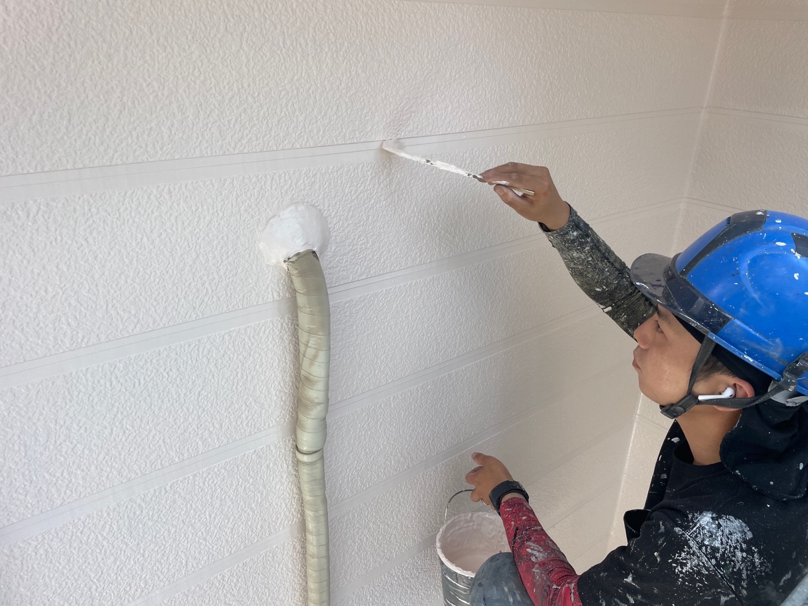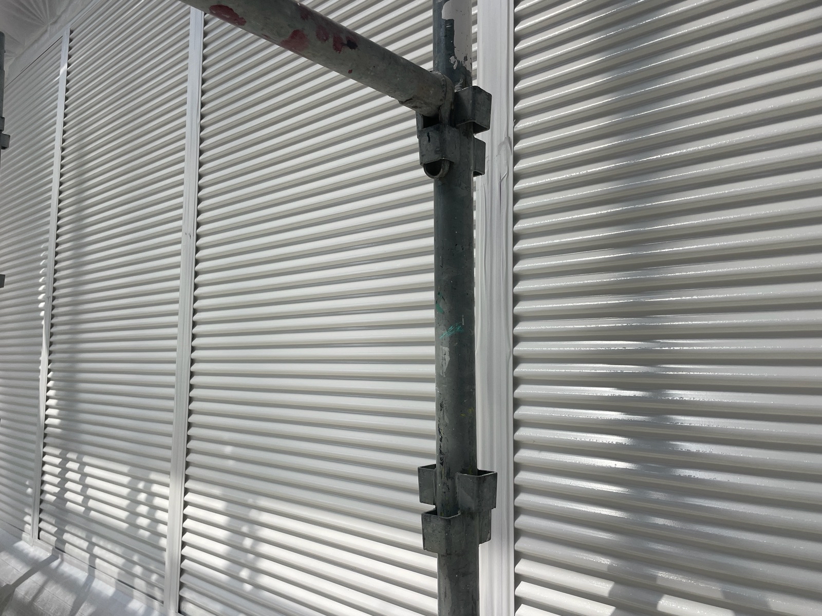 本日は、付帯塗装・手直し・下屋根上塗り2回目をさせて頂いております。