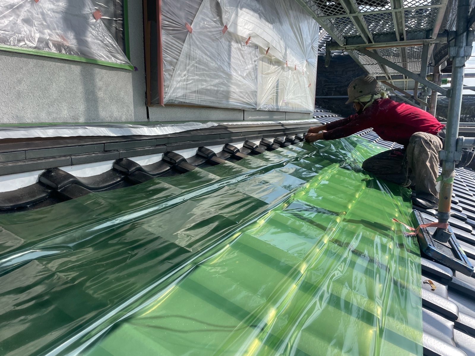 ビニールなどで覆う作業の事です!