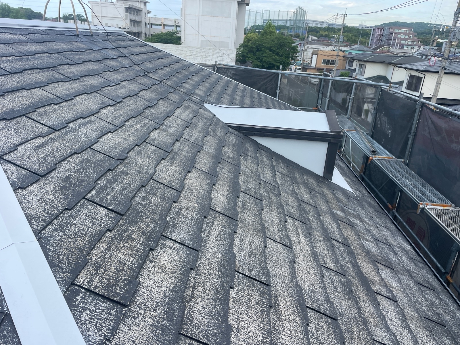 本日は、屋根下塗り1回目(続き)、養生作業をさせて頂いております!