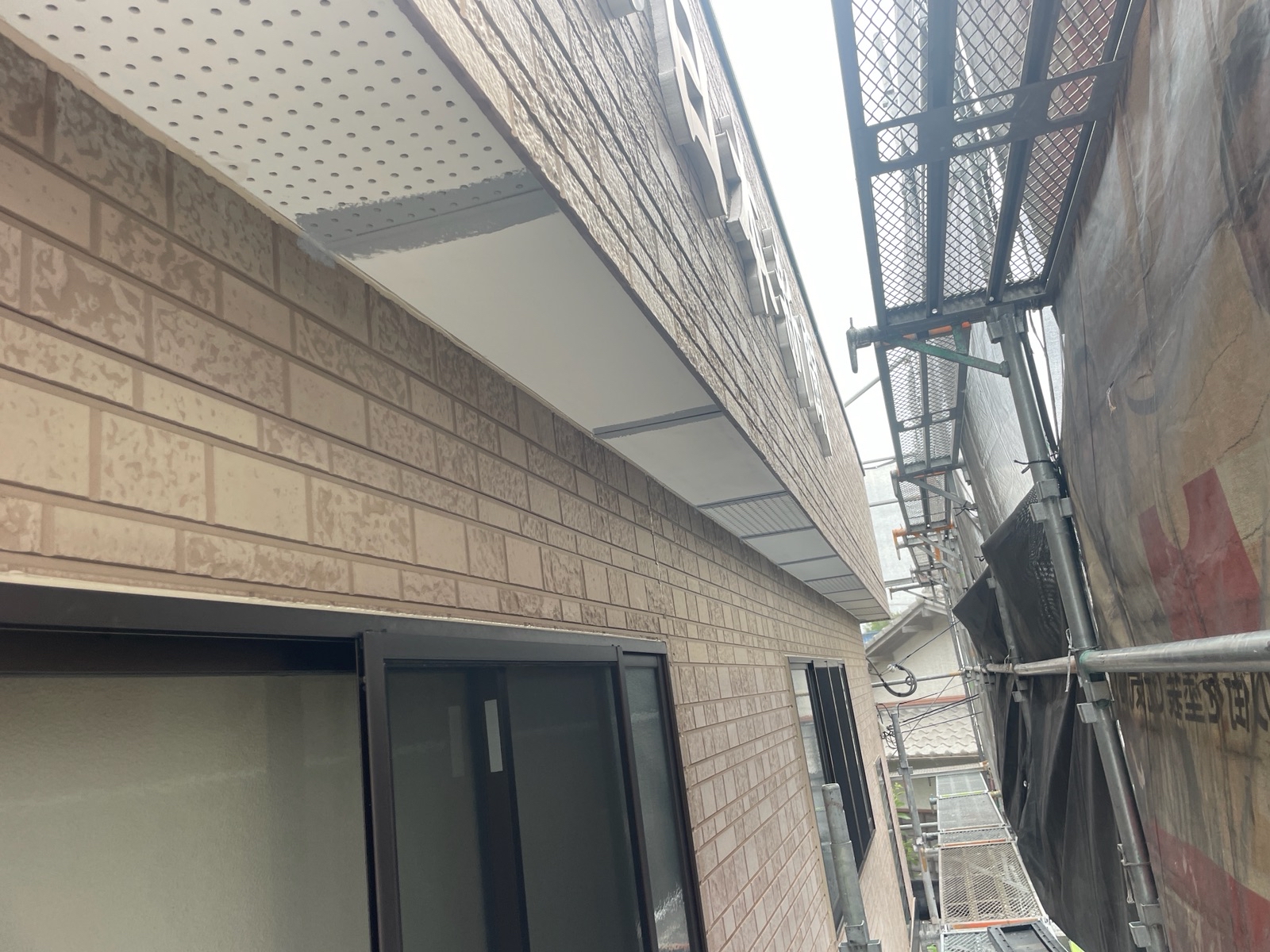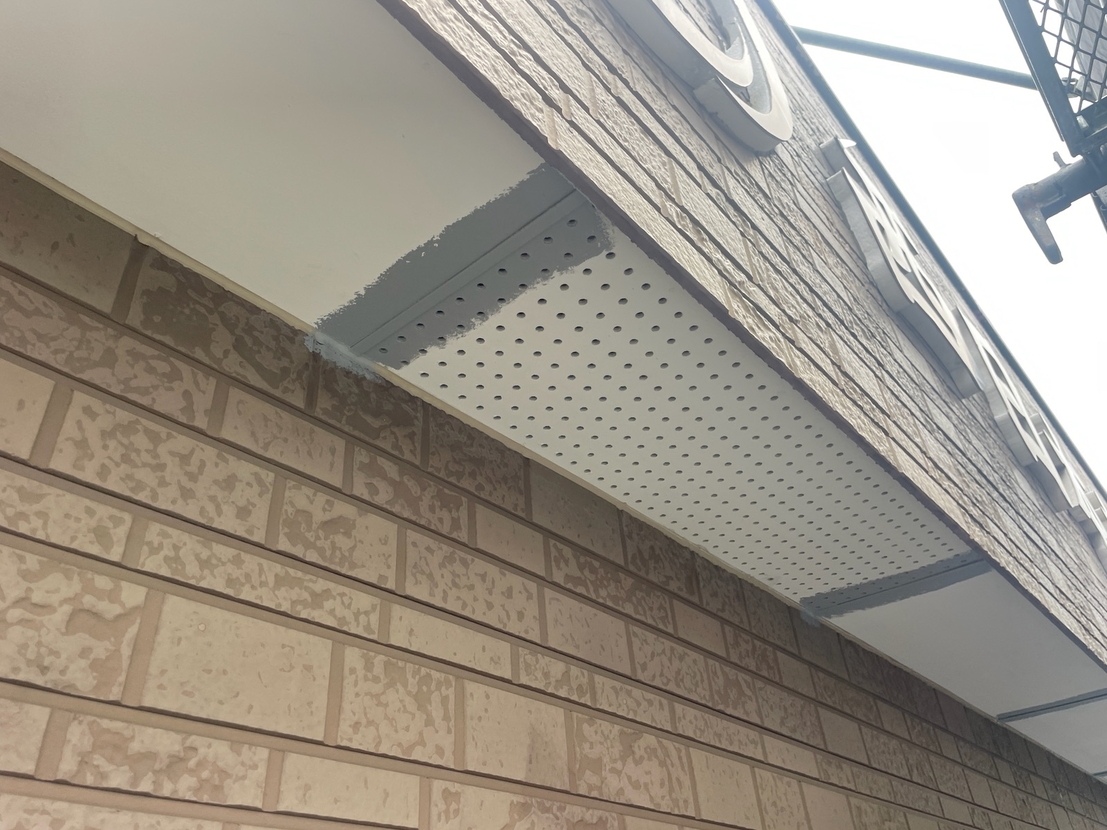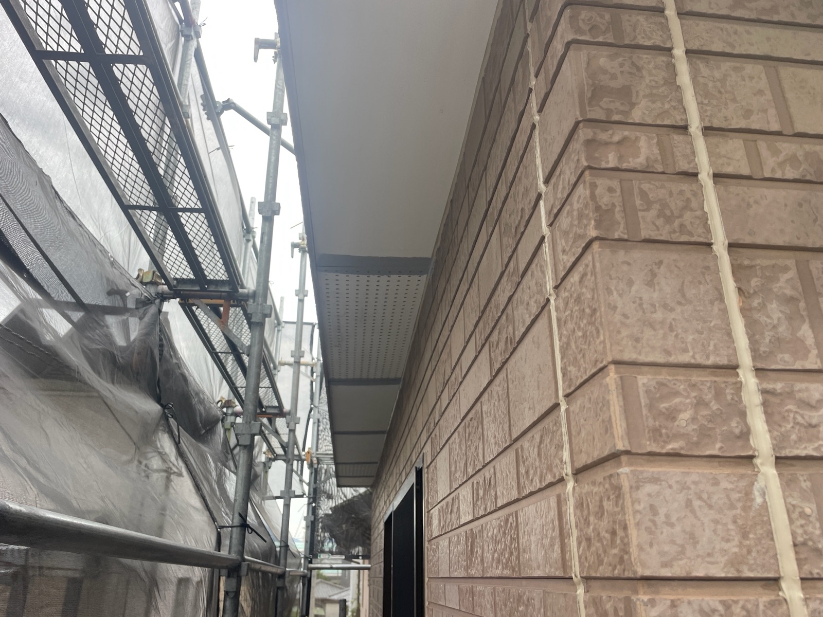 本日は、シーリングの施工と鉄部の錆止めをさせて頂いております。