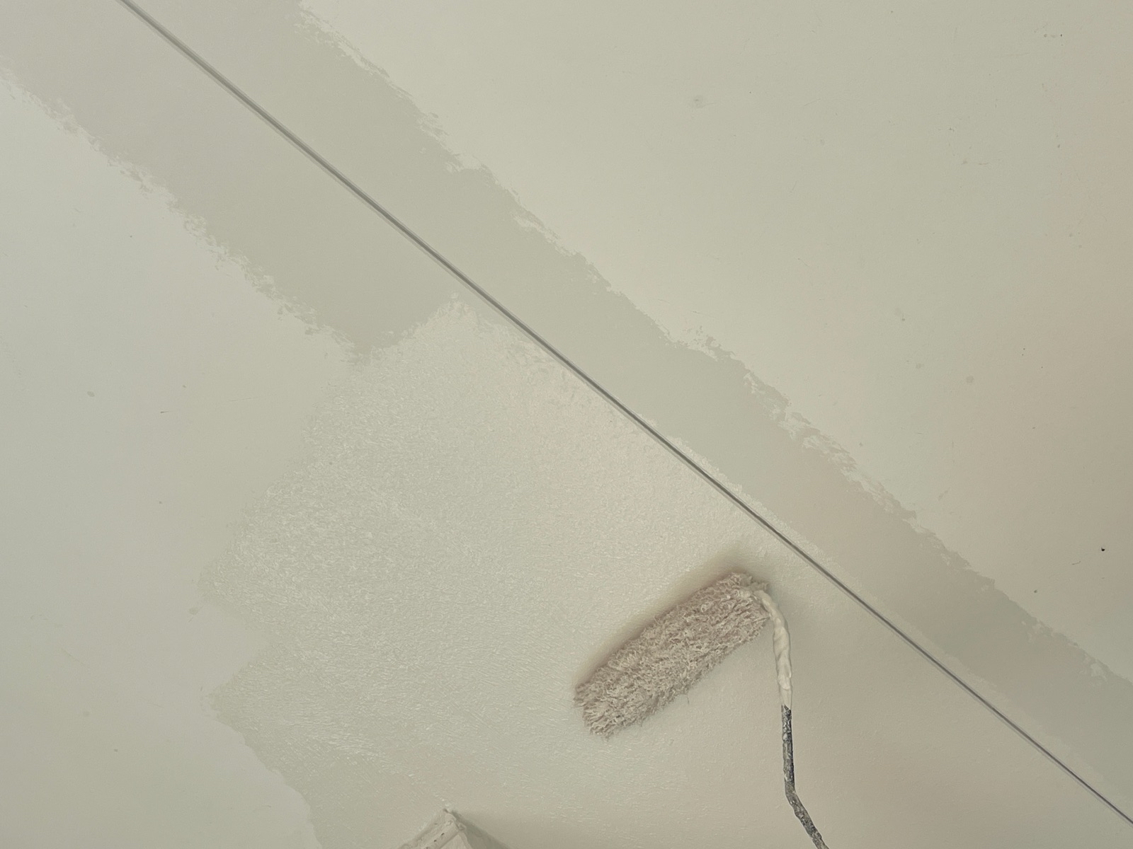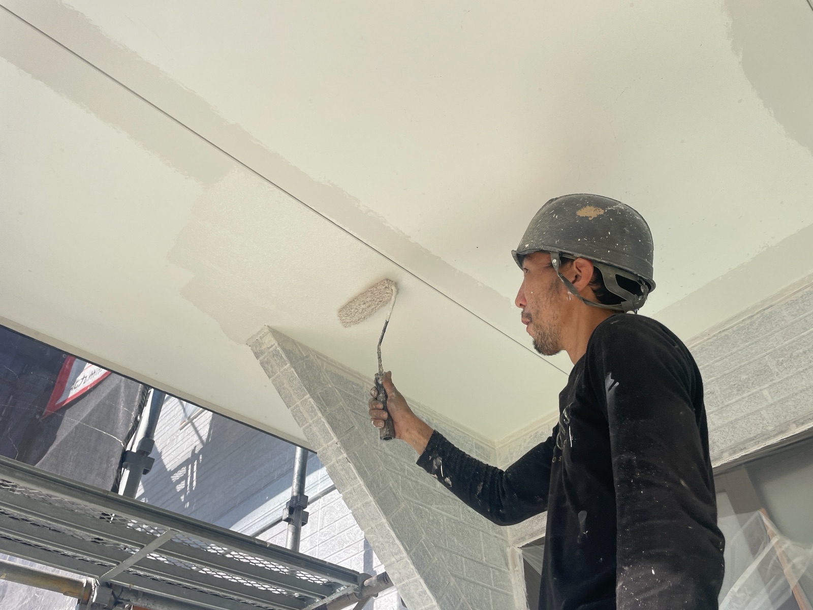 本日は、軒天塗装と外壁下塗り及び中間検査をさせて頂いております。