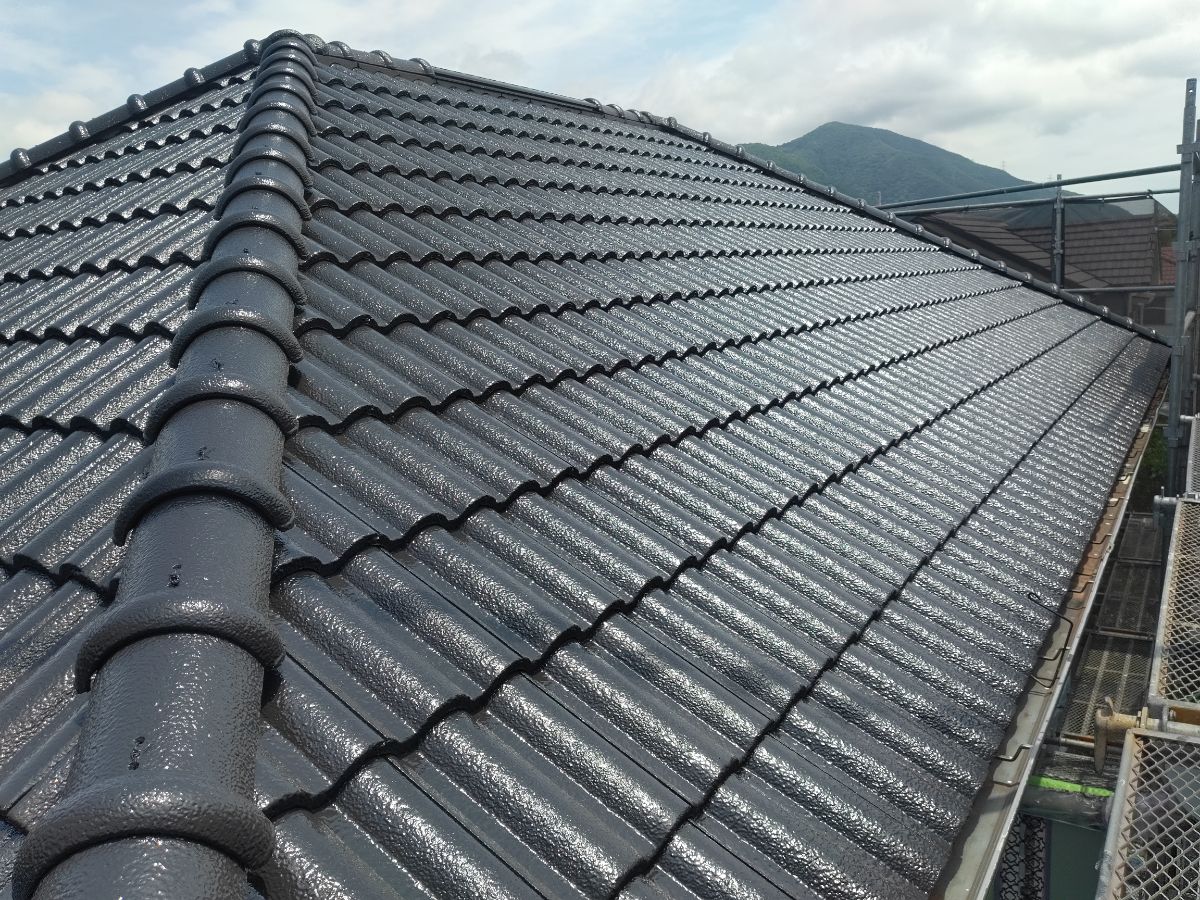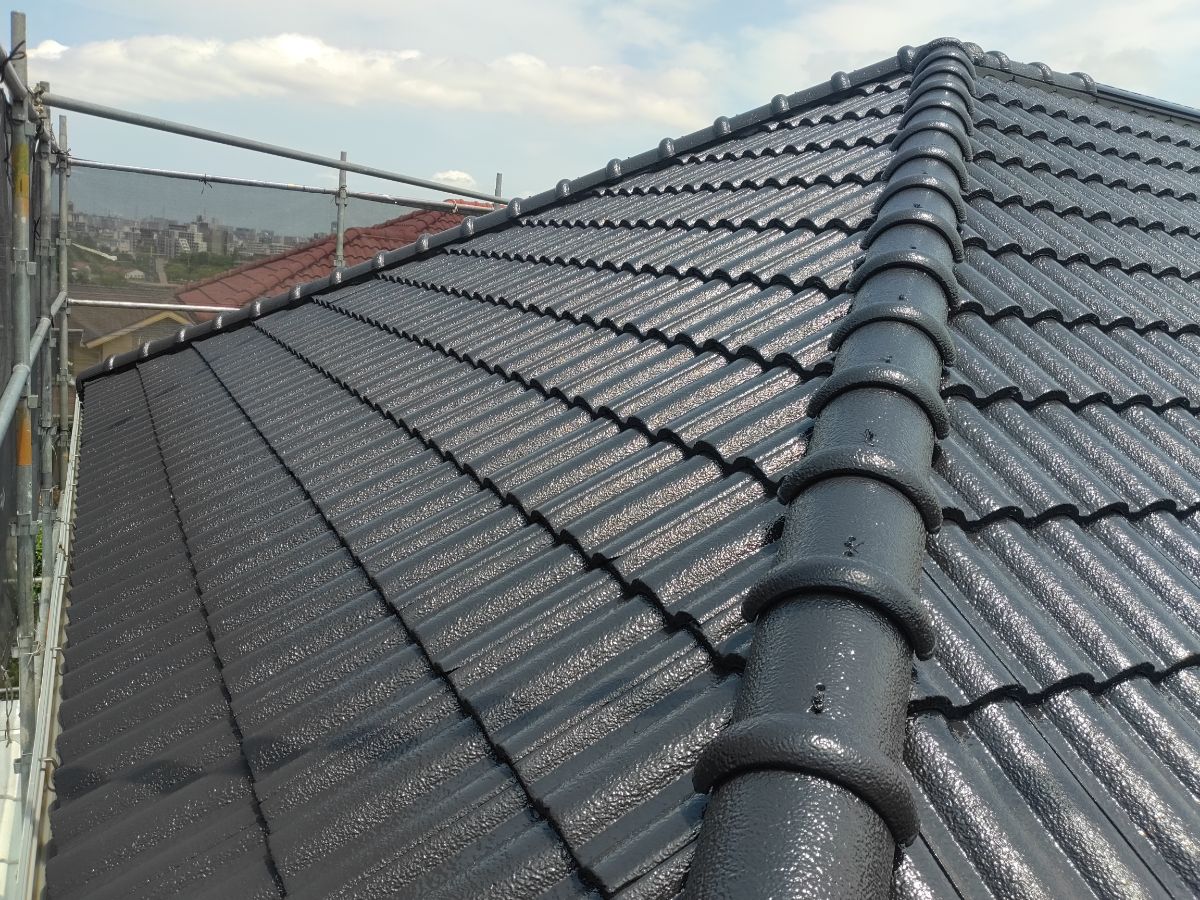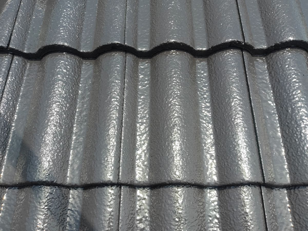 屋根は先週、検査後に上塗り1回目を行っておりますので、上塗り2回目を行いました!