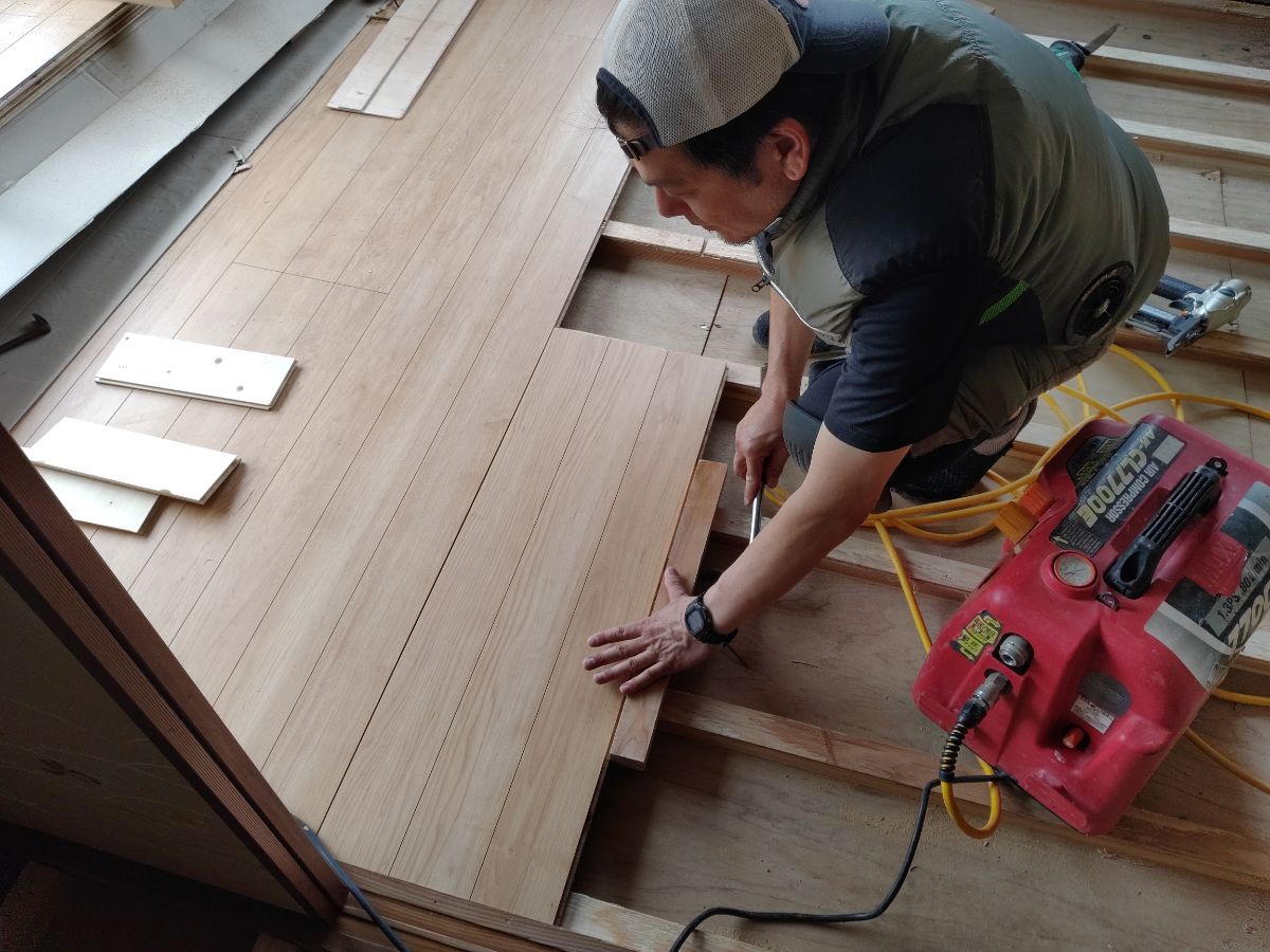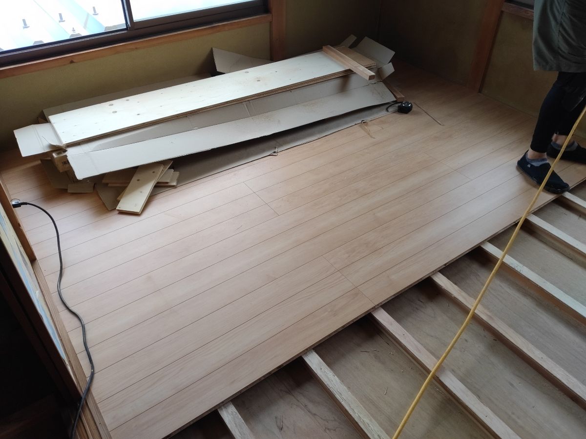 畳を撤去し、根太を打って、フローリングを設置しております!