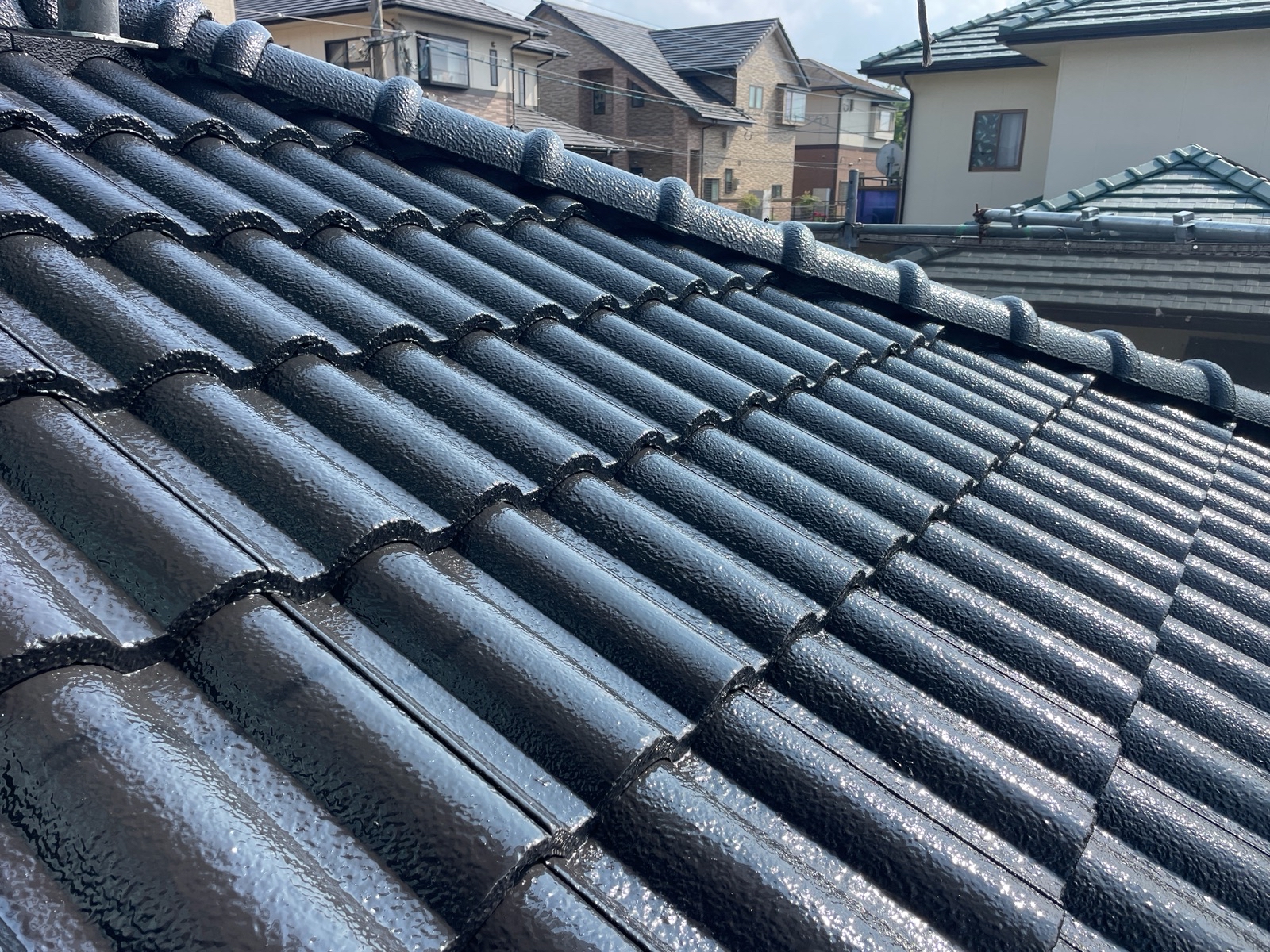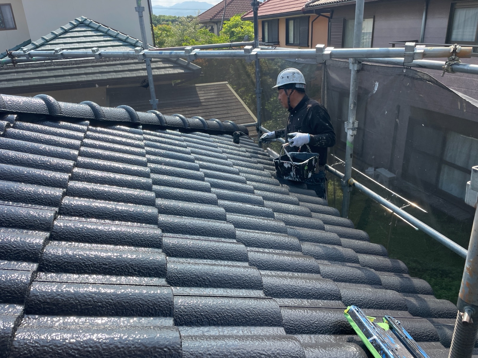 本日は、下屋根上塗り2回目、付帯塗装をさせて頂いております。
