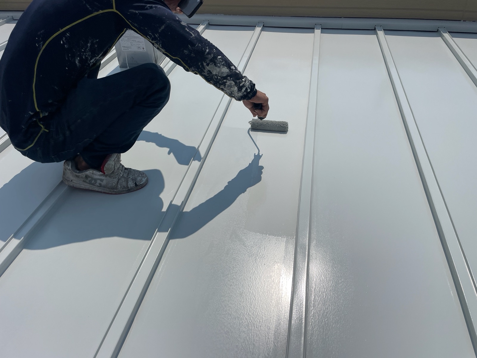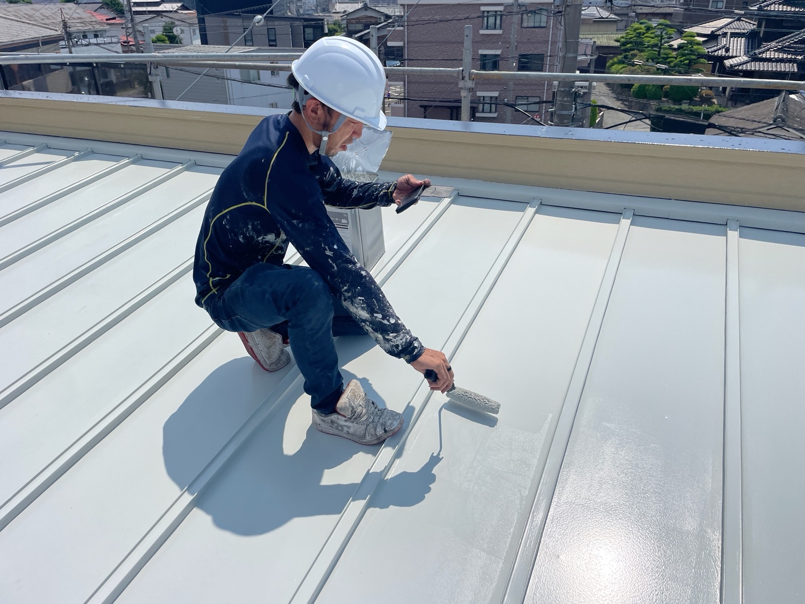 本日は、屋根上塗り2回目、付帯部塗装をさせて頂いております。