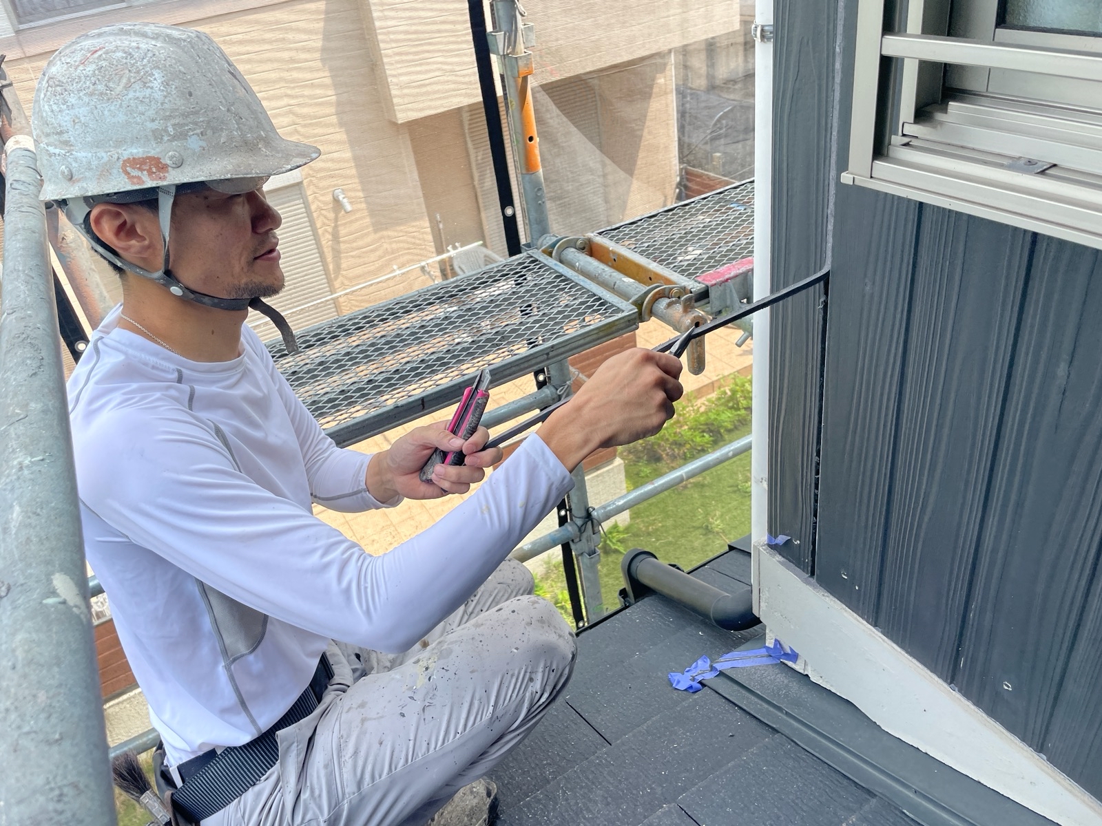 本日は2階周りのシーリングの撤去と施工を行っております!