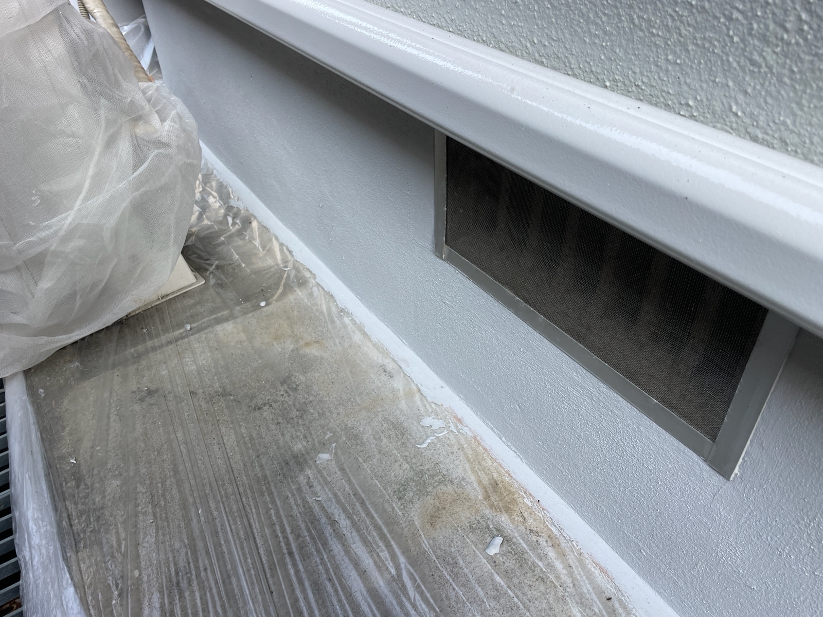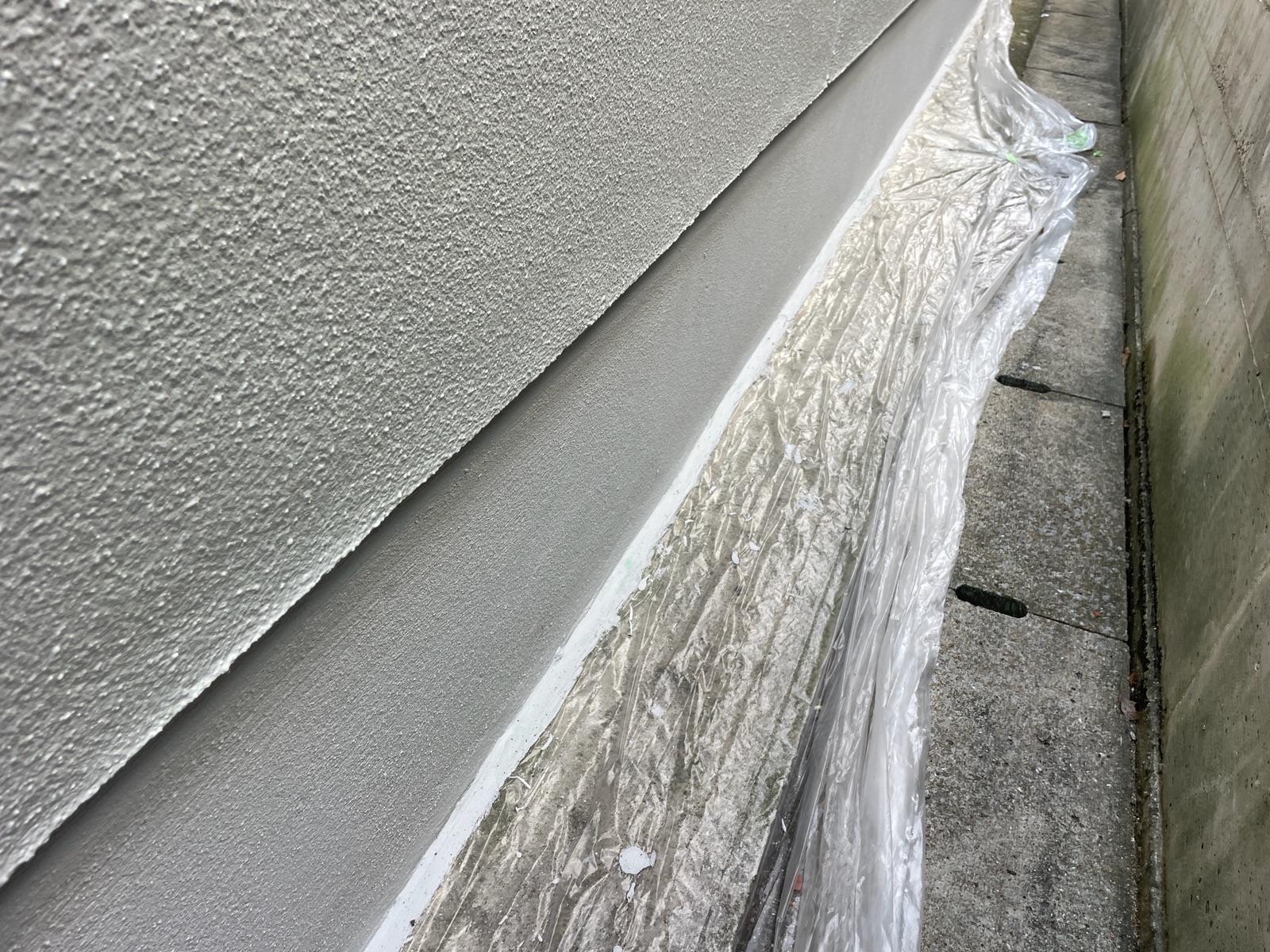 しっかりと土間に養生を行い、基礎を塗装しております!