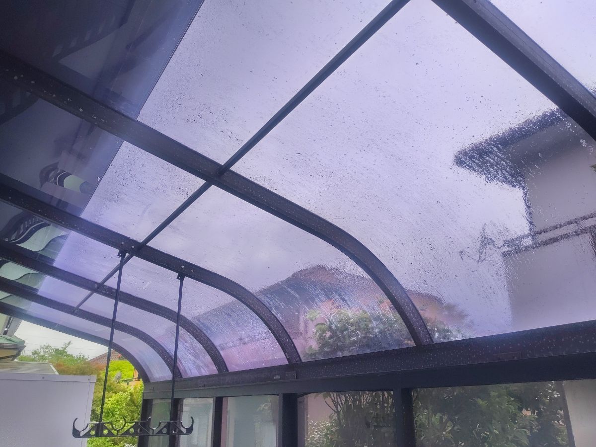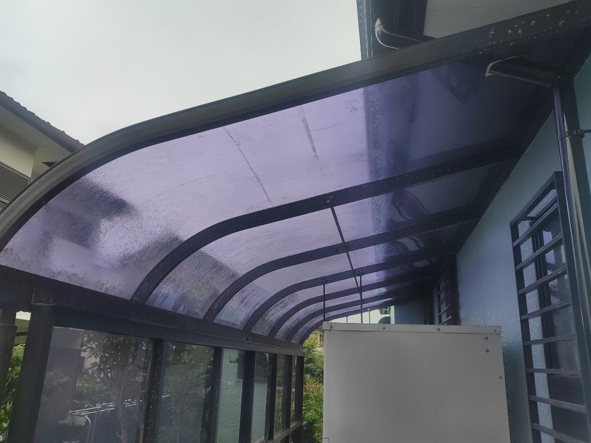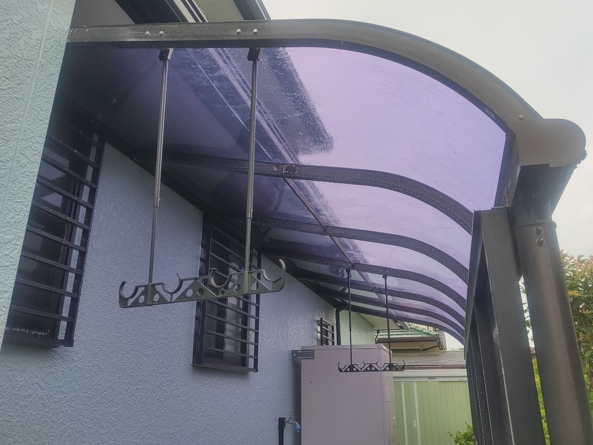 足場を組み立てる際に、どうしてもテラス屋根が干渉してしまうので