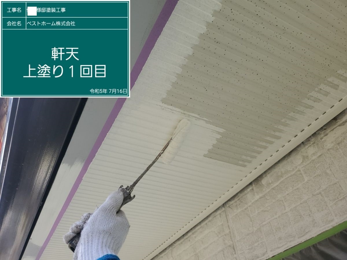 次回施工・・・軒天塗装、外壁上塗り1回目
