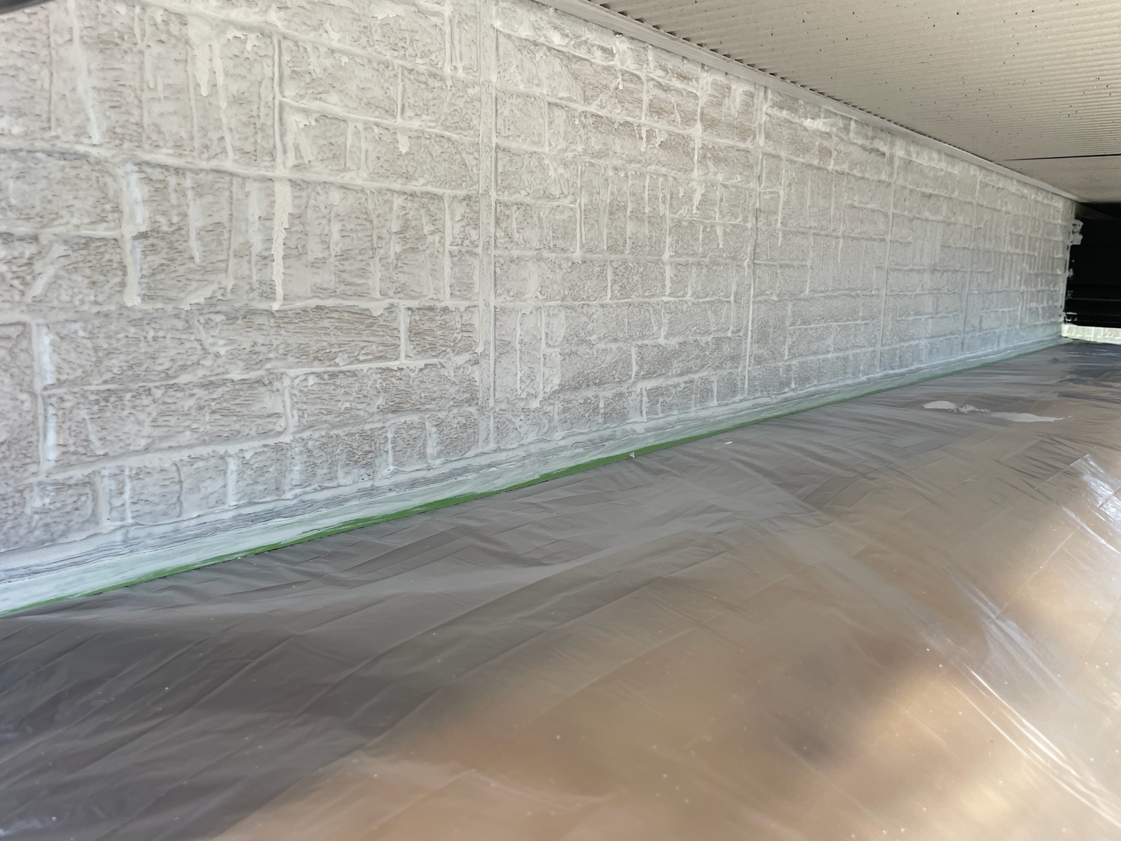 本日は、外壁の下塗りと中間検査、軒天の塗装をさせて頂いております。