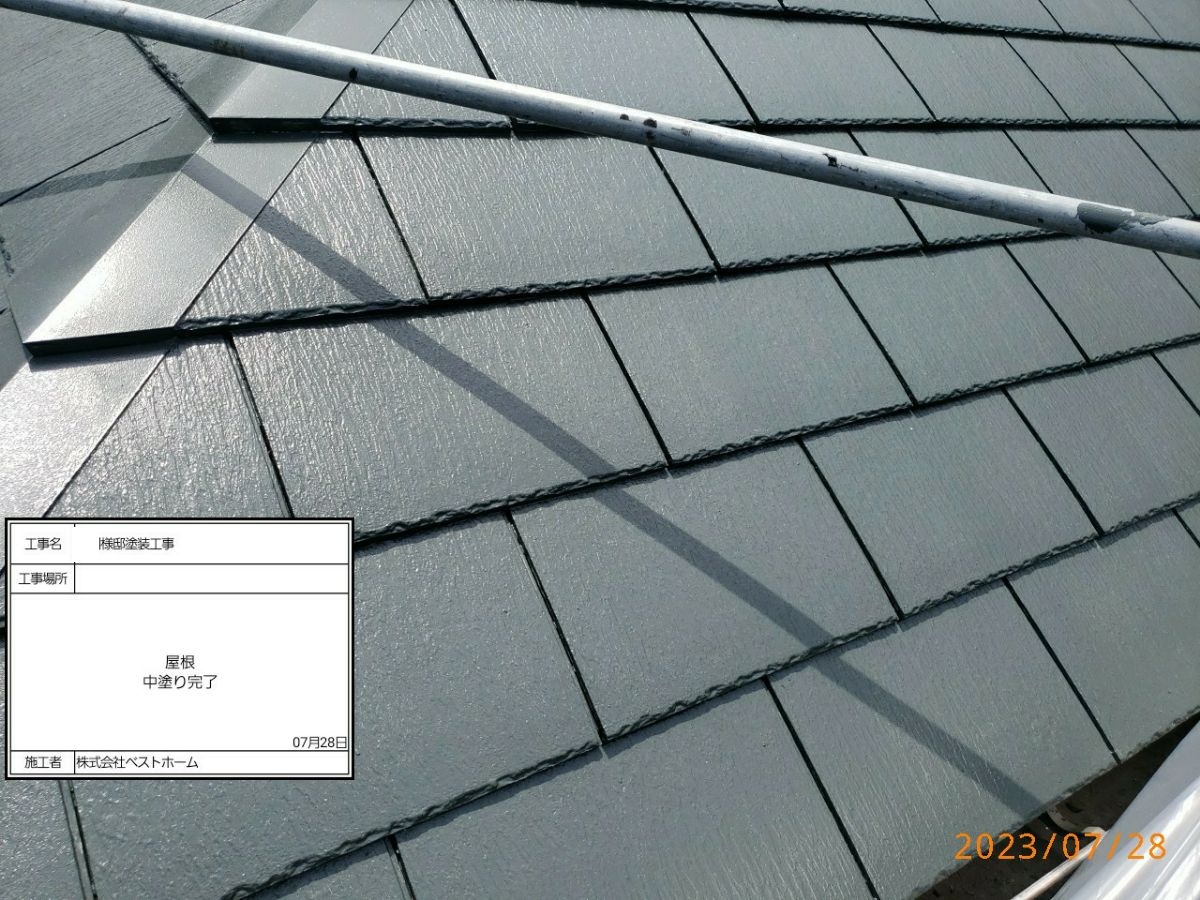 次回施工・・・屋根上塗り2回目、鉄部上塗り2回目