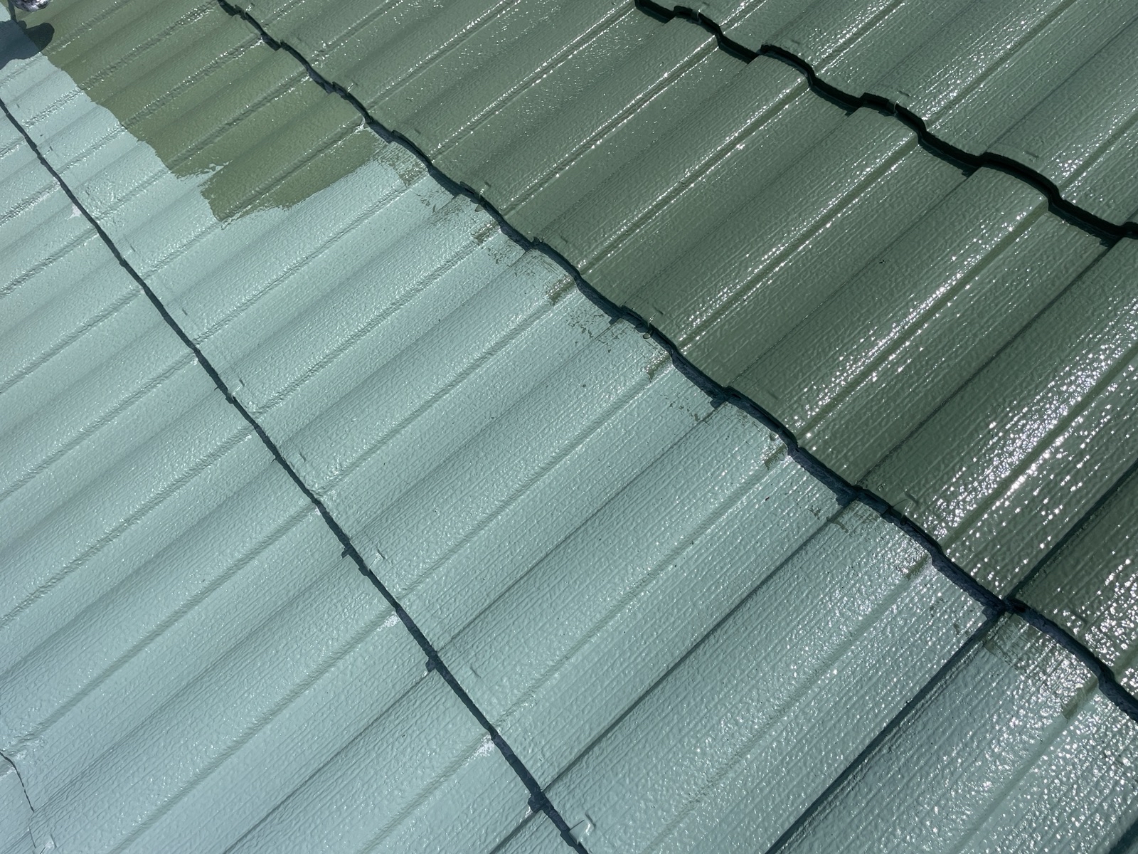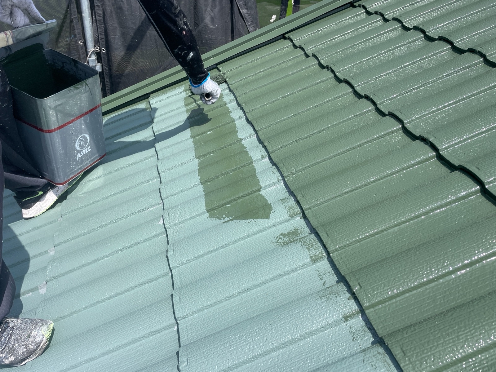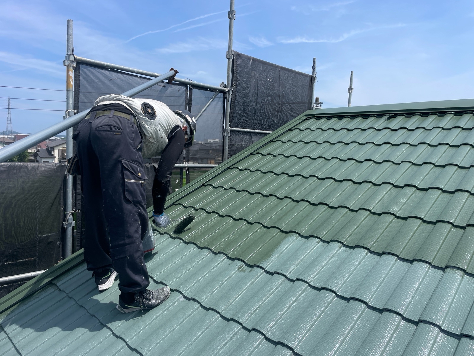 本日は、お屋根の中塗りの施工をさせて頂いております。