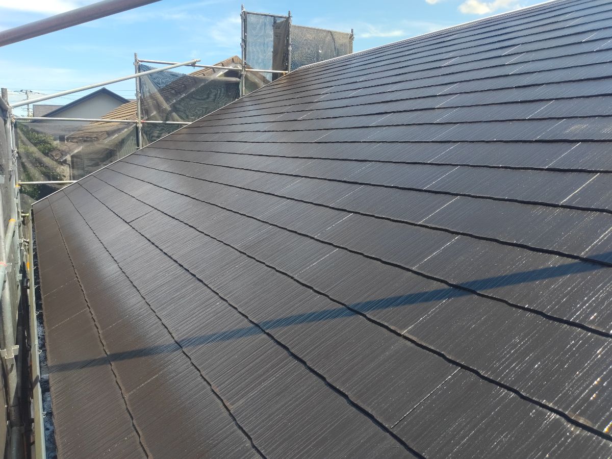 今回のお屋根の下塗り1回目は透明の塗料を塗っております!