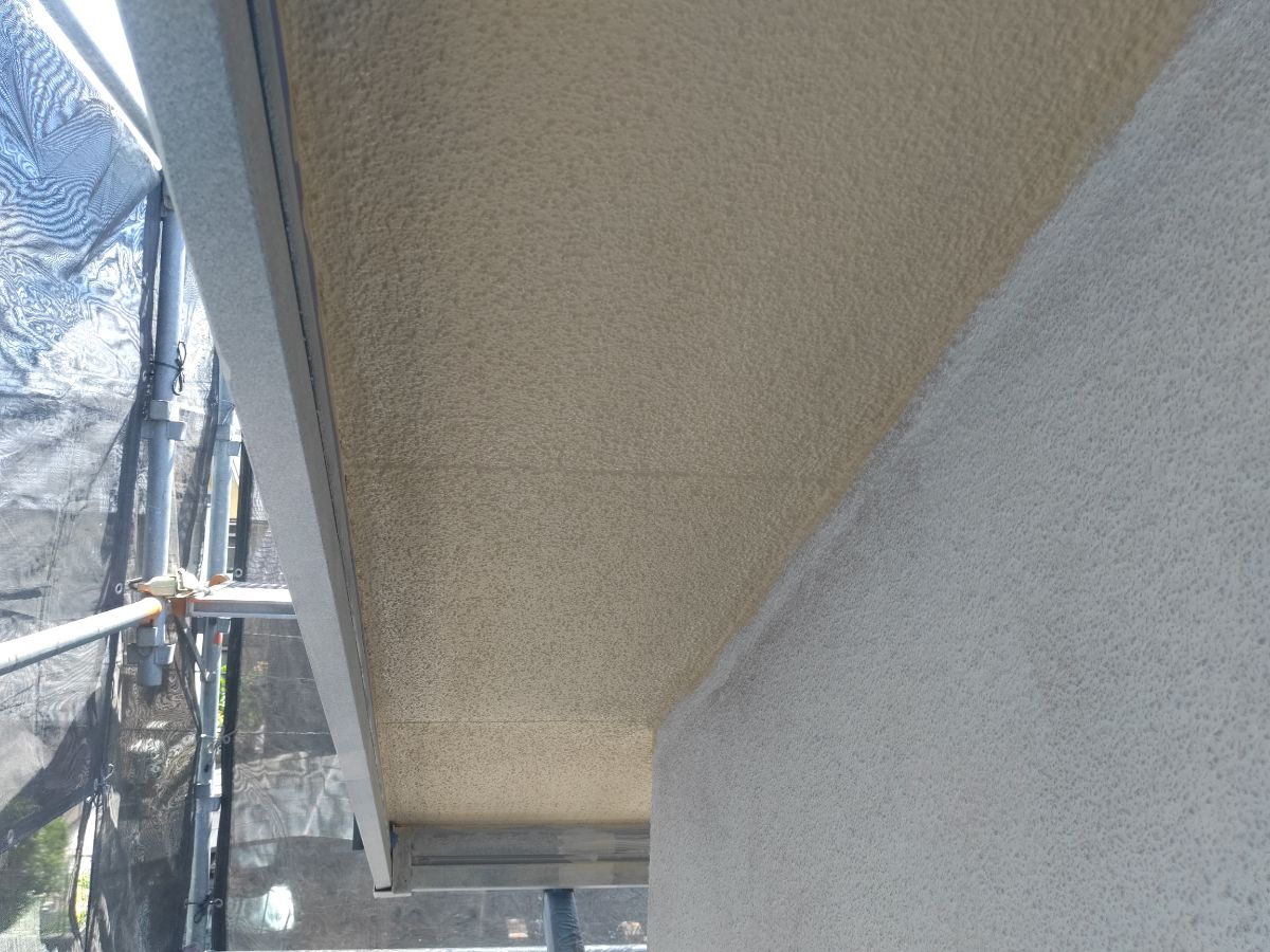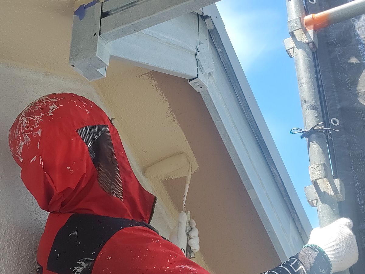 本日は、外壁下塗り1回目(続き)、外壁下塗り2回目(一部)、屋根下塗り1回目、軒天塗装をさせて頂いております。