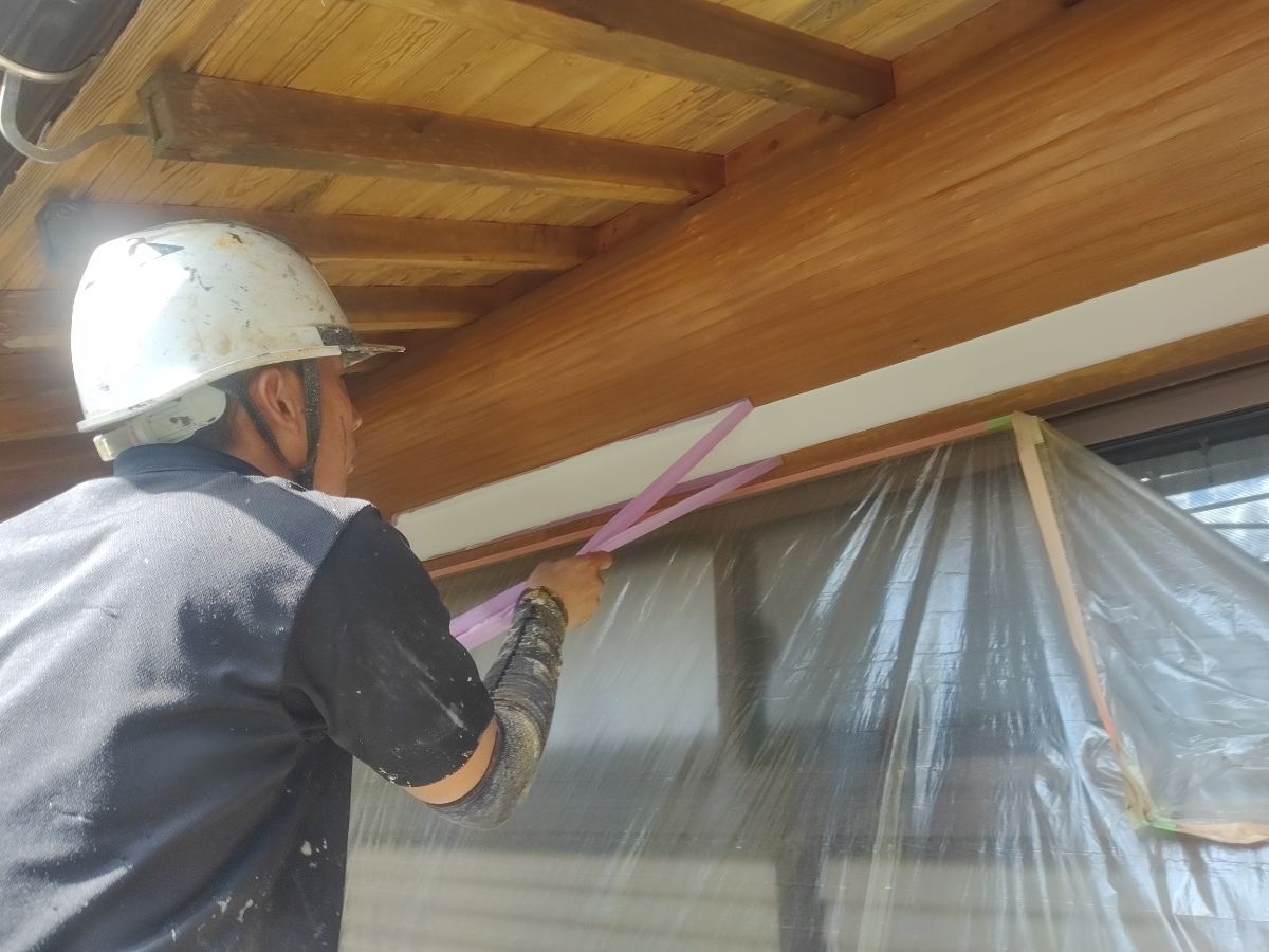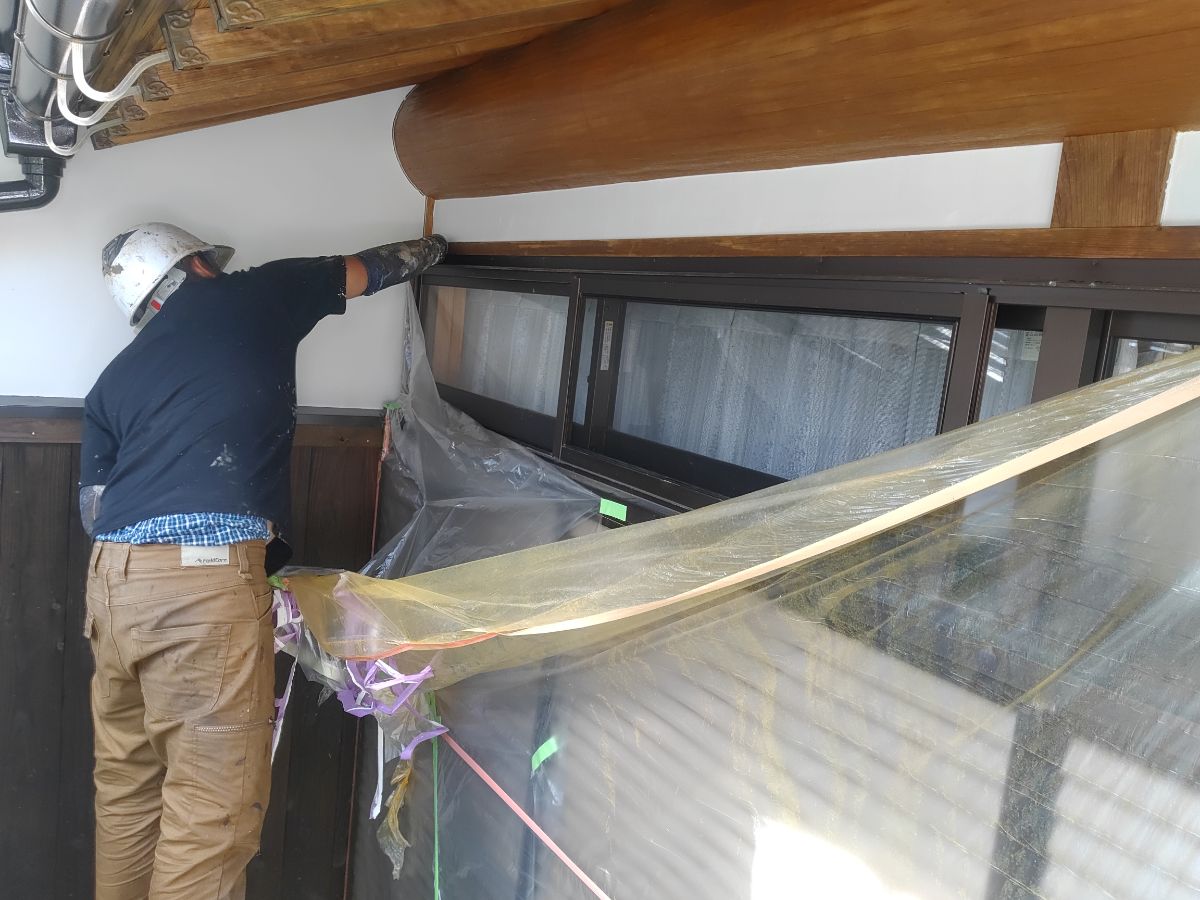 本日は養付帯部の塗装、一部養生バラシをさせて頂いております。