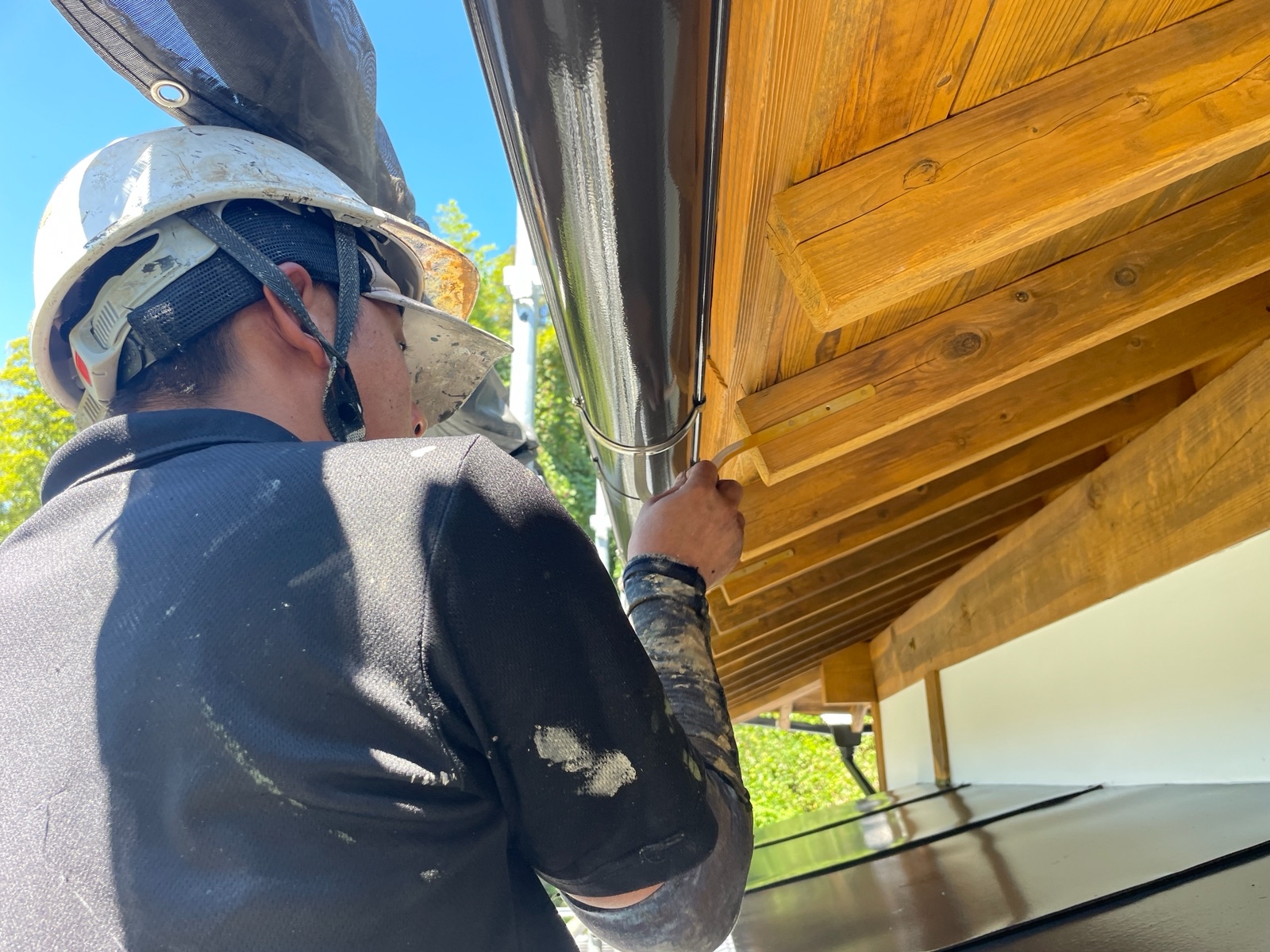 離れのトタン壁の塗装を引き続きさせて頂いております!
