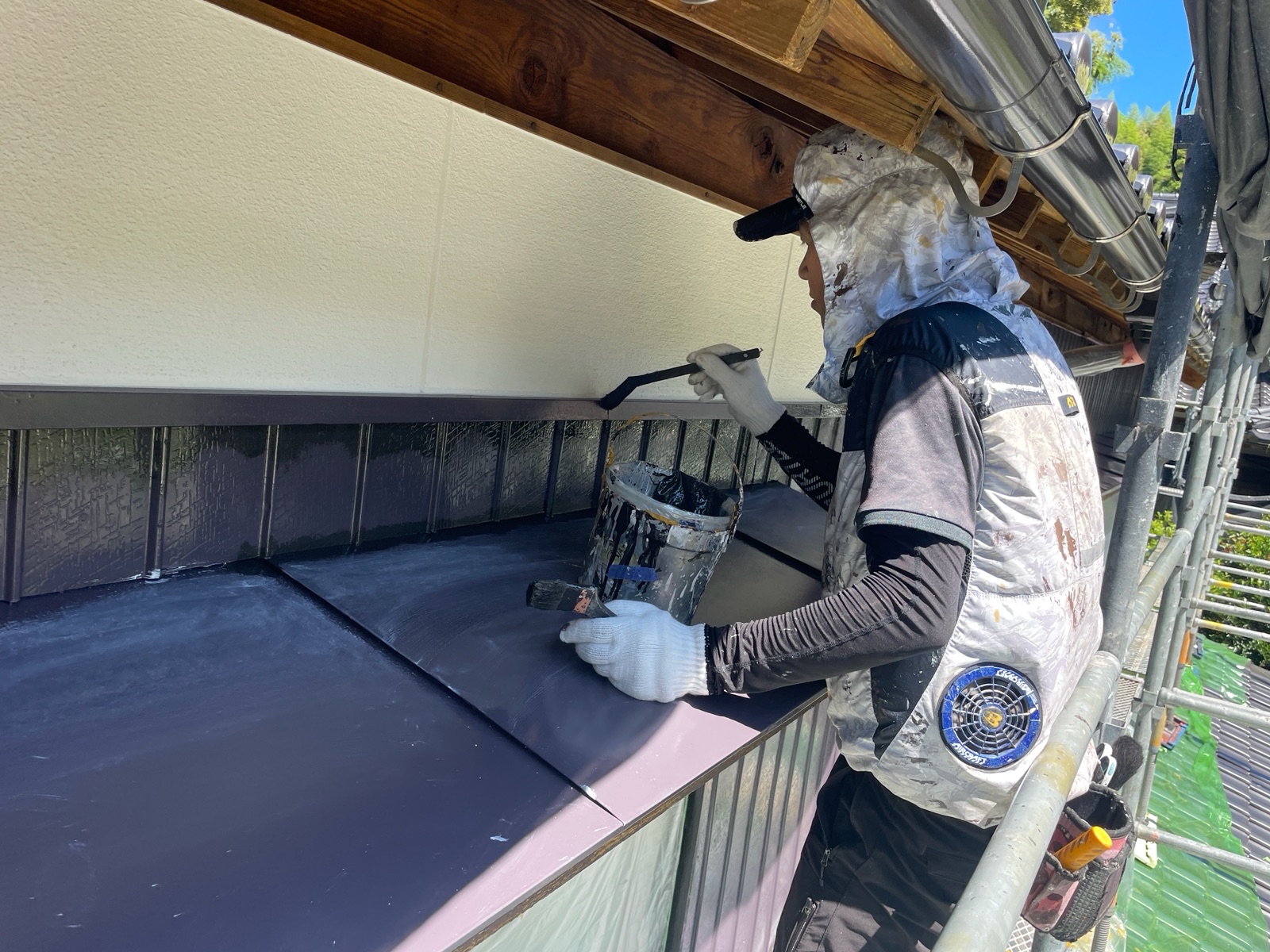 本日は瓦棒屋根、トタン壁、付帯の塗装をさせて頂いております。