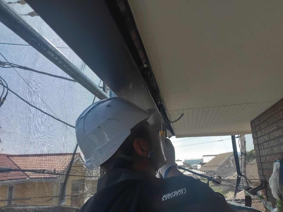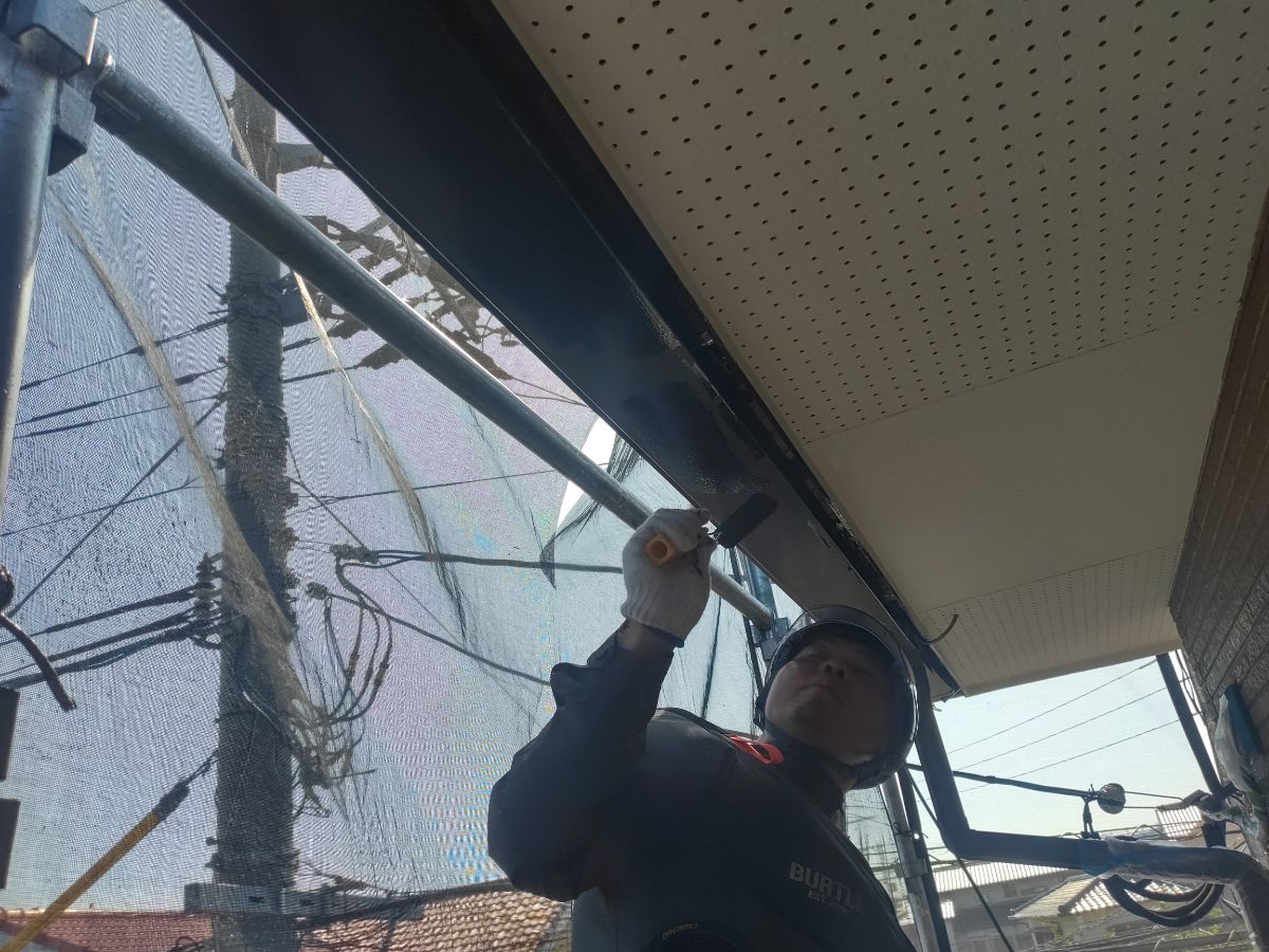 本日は、外壁下塗り、付帯塗装をさせて頂いております。