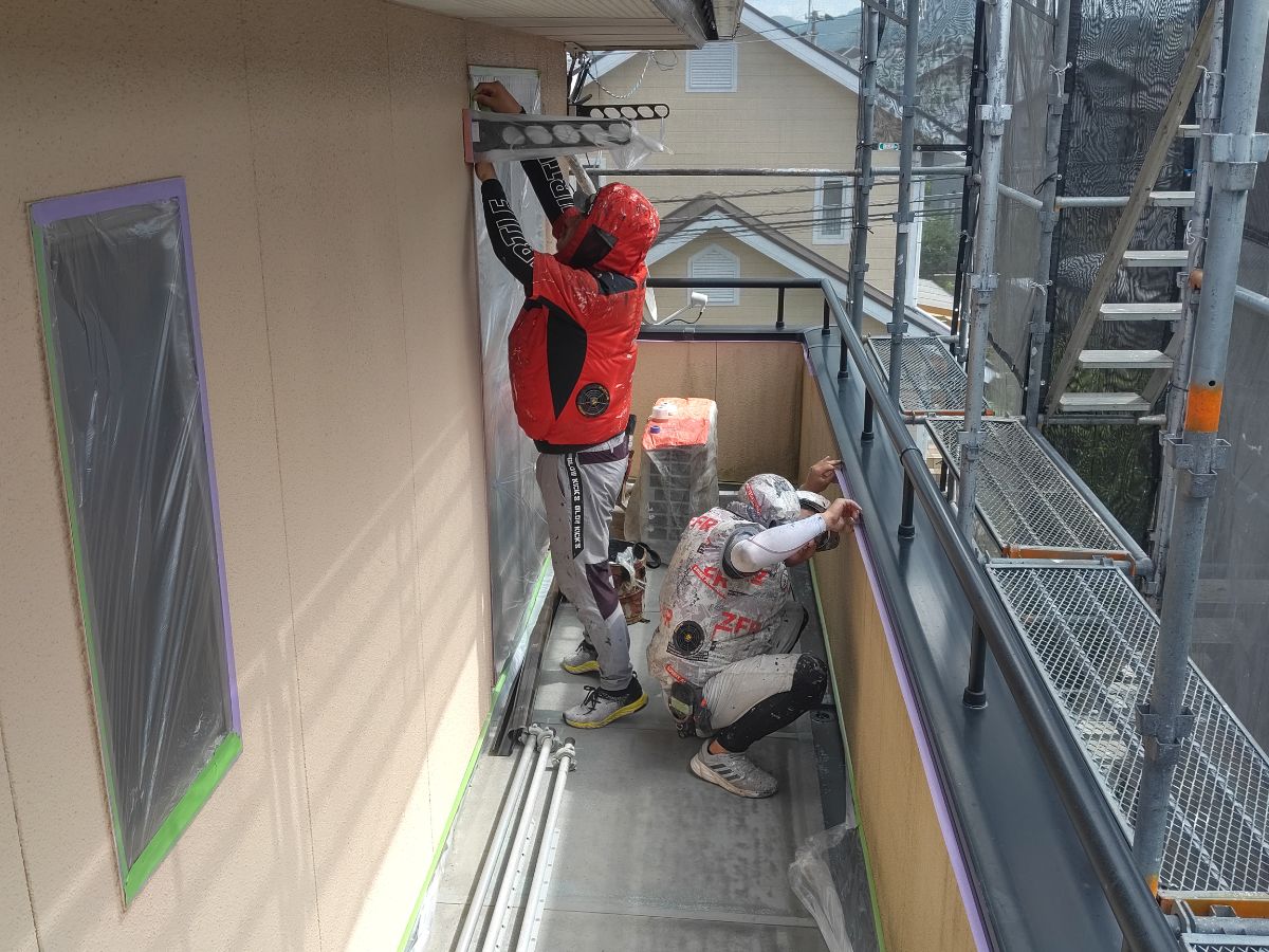 本日は鉄部錆止め、養生作業をさせて頂いております!