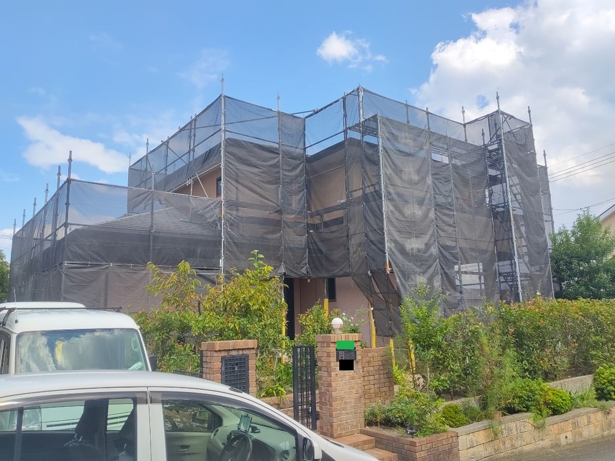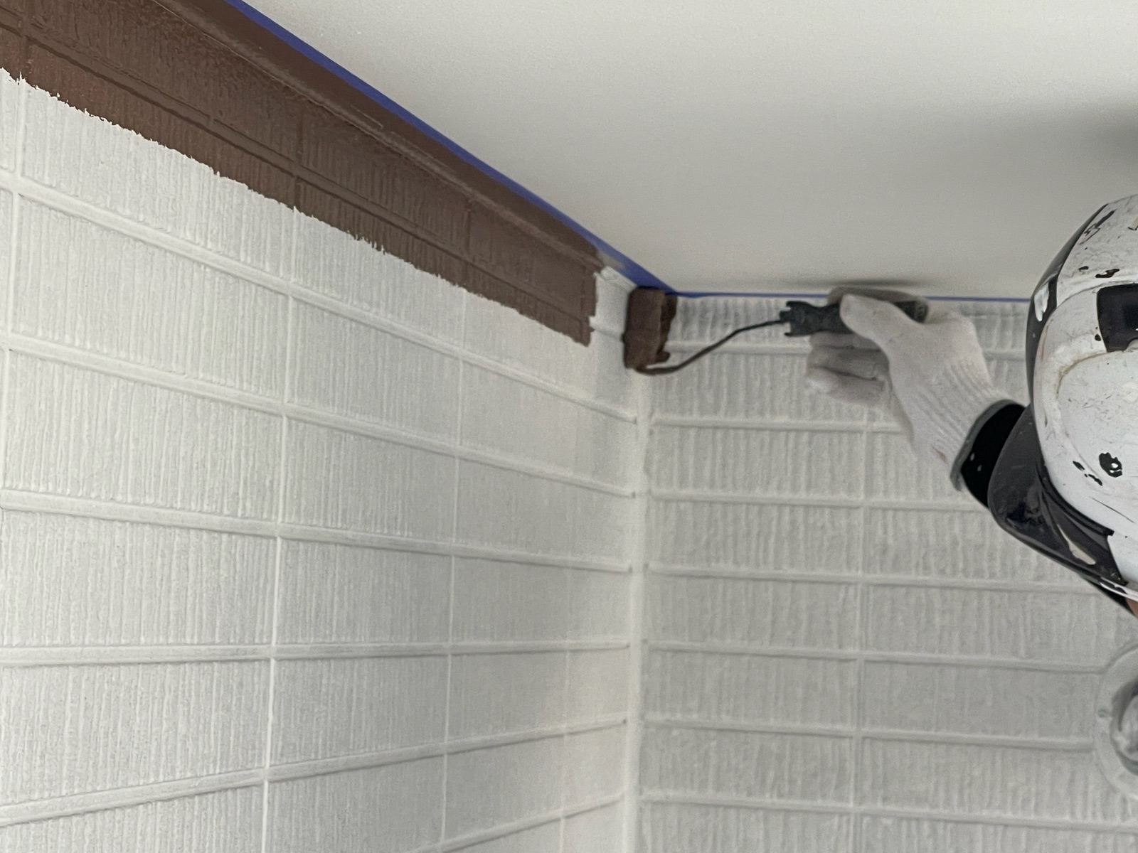 次回施工・・・屋根中間検査・上塗り1回目、外壁上塗り2回目、付帯部塗装