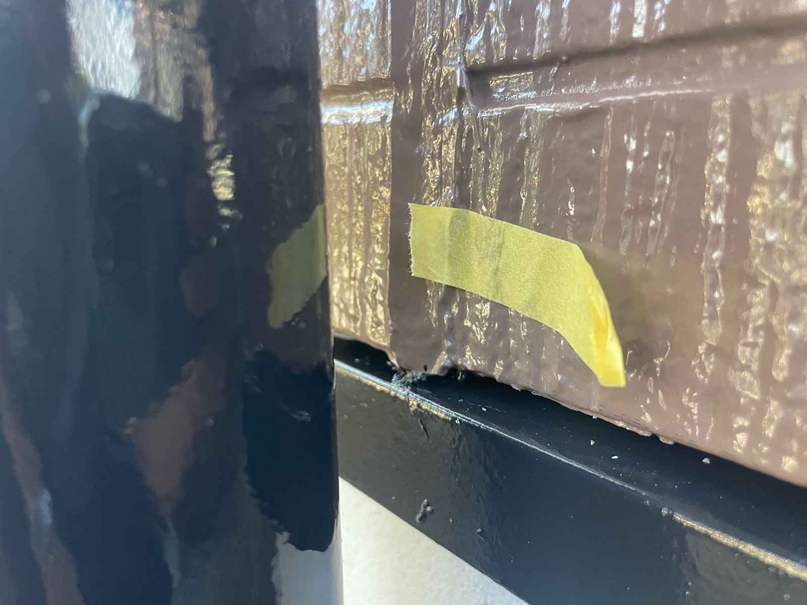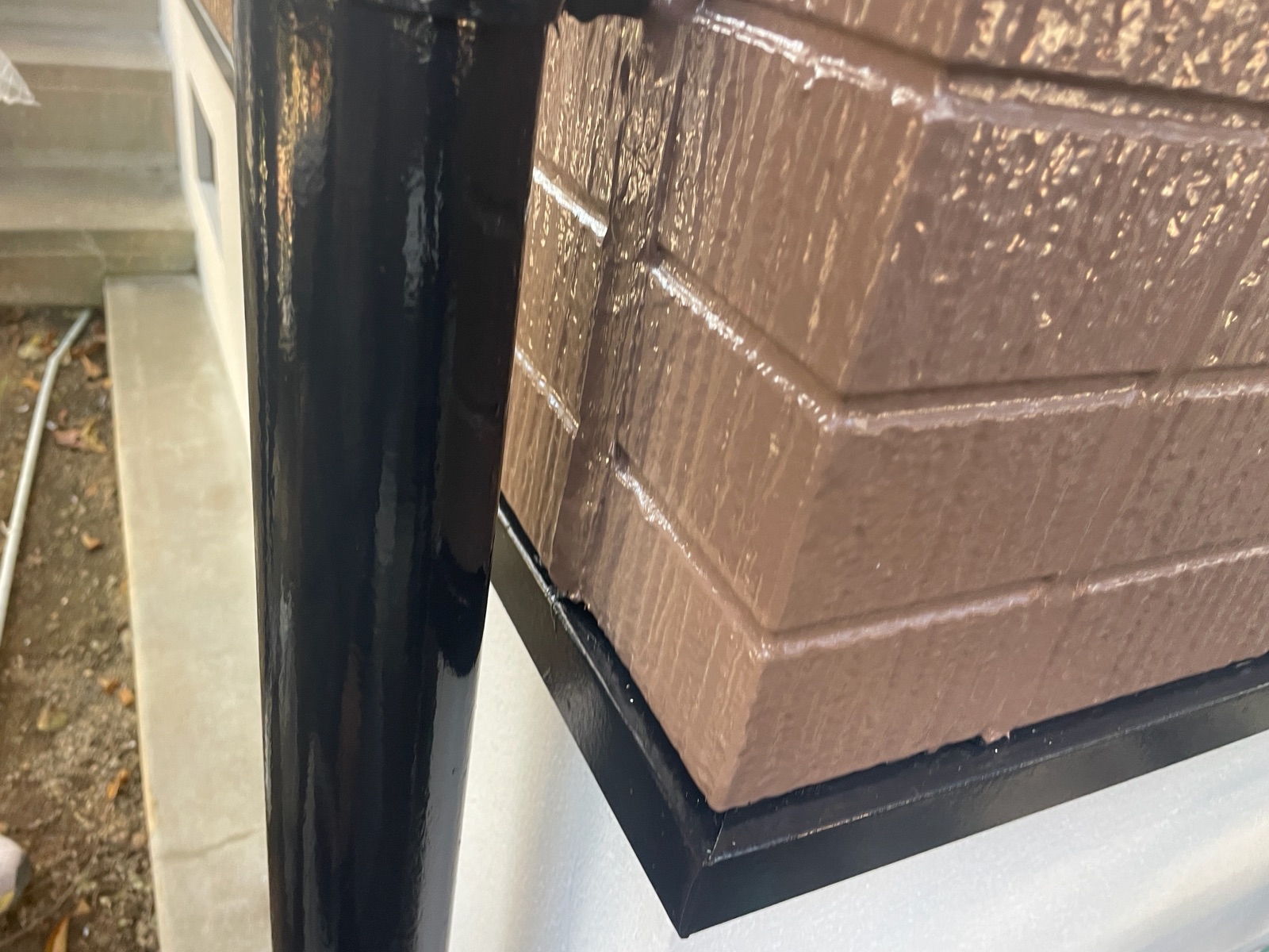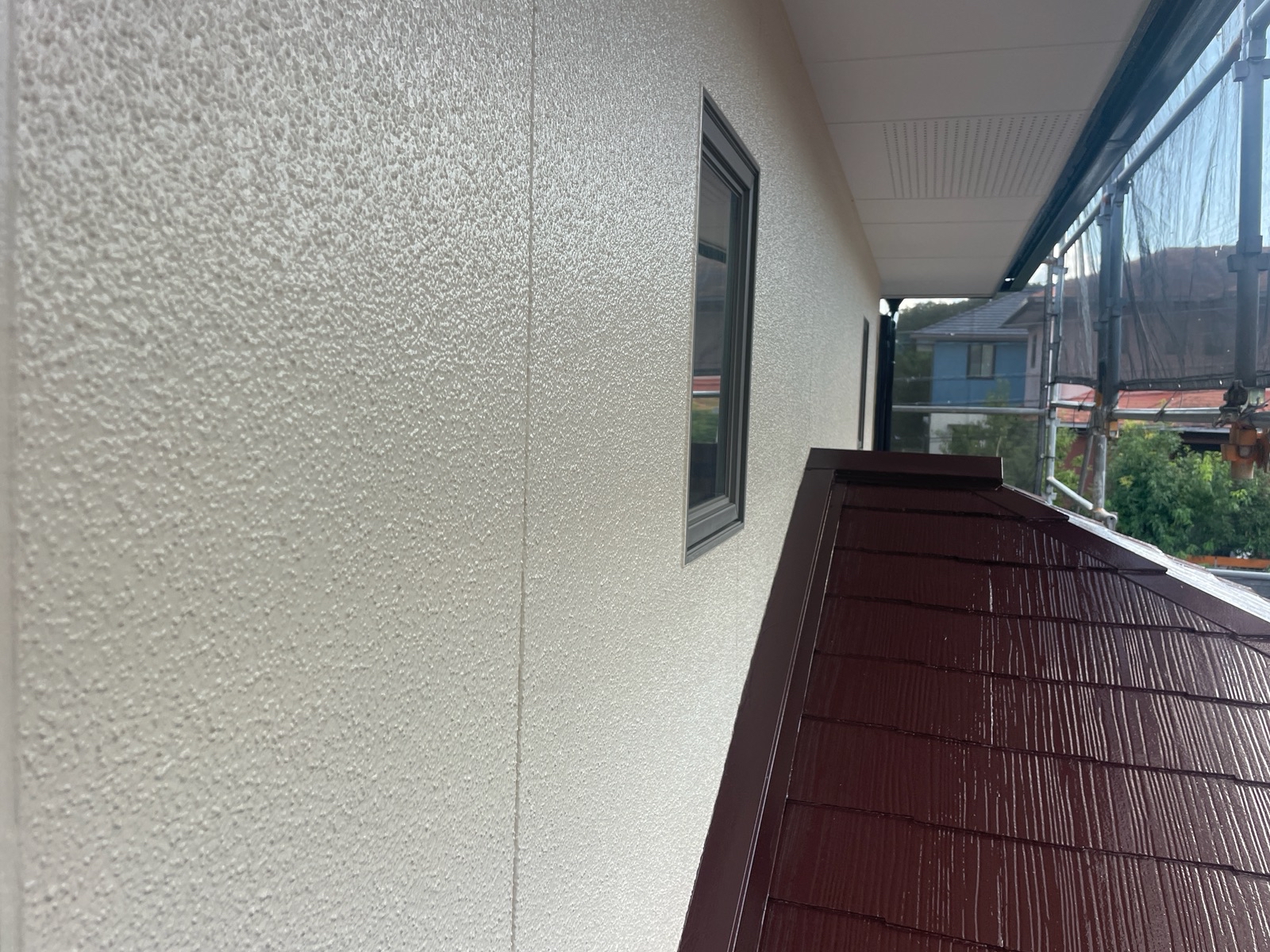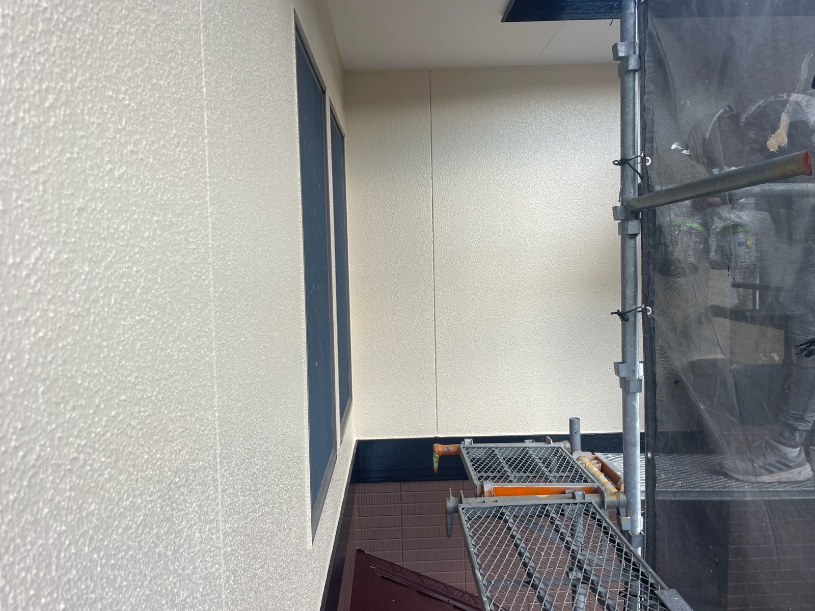 本日は、下屋根の上塗り2回目、付帯部塗装、ベランダ塗装をさせて頂いております。