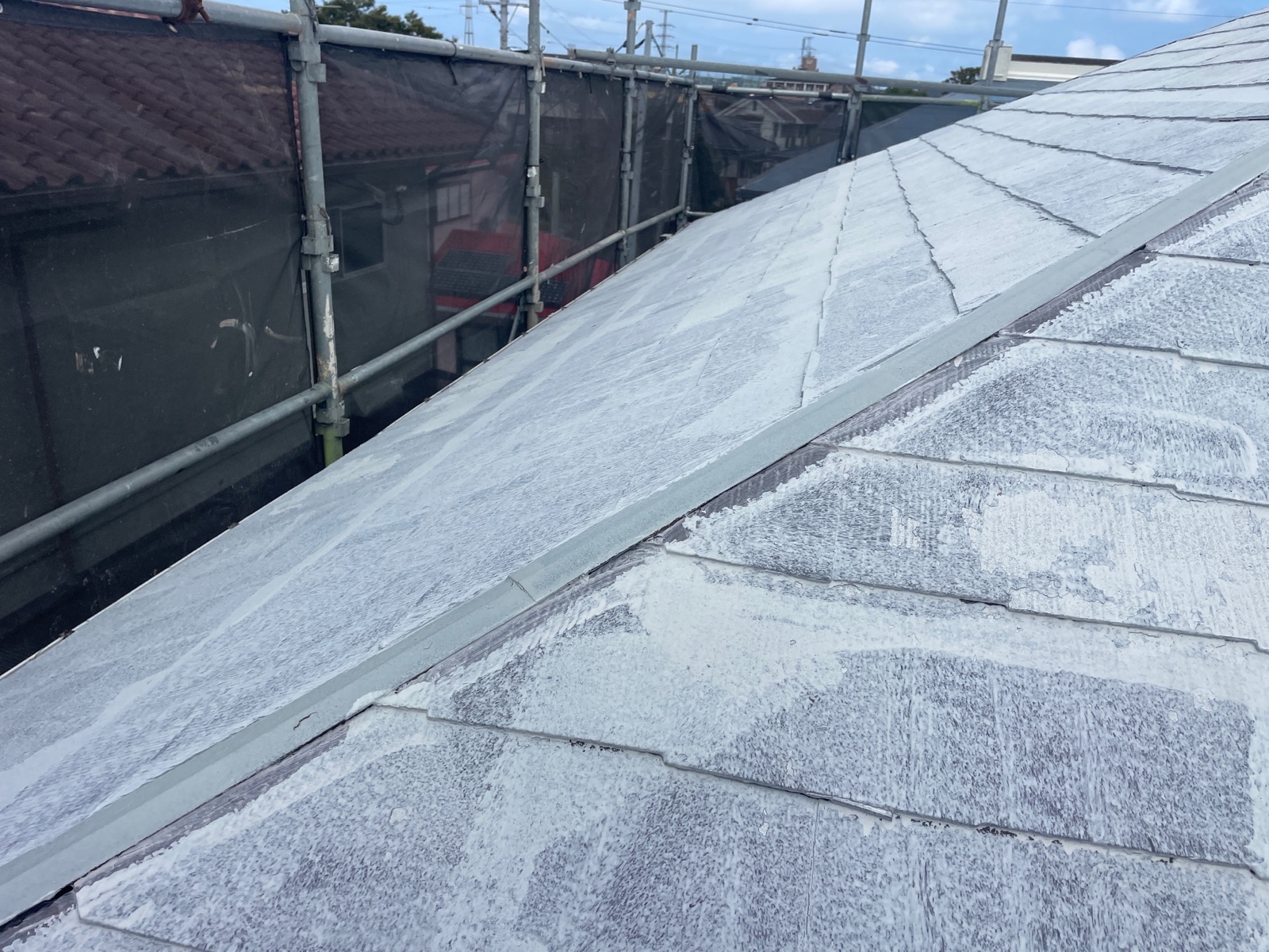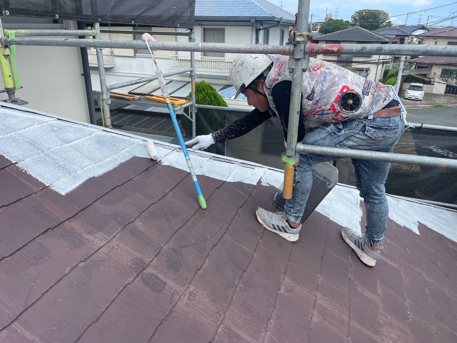 本日は、屋根の下塗り1回目、付帯部塗装等をさせて頂いております。