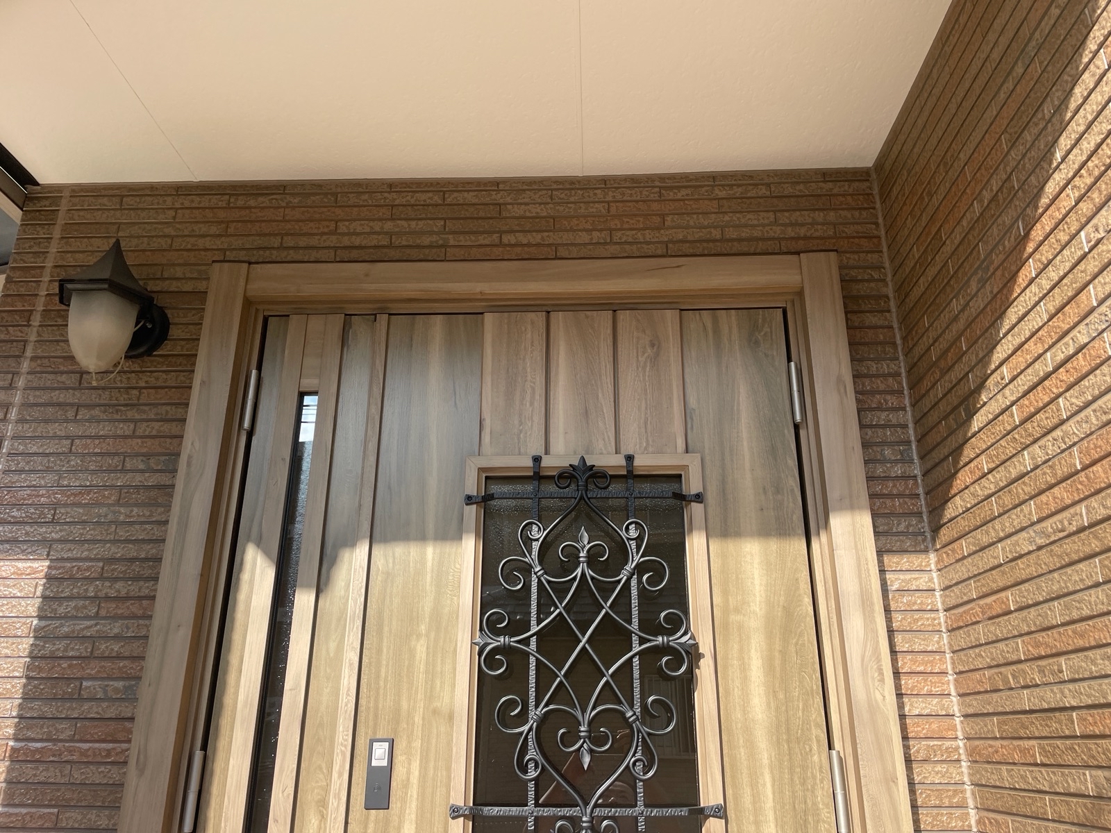 本日は、玄関ドアのリシェント工事をさせて頂いております。