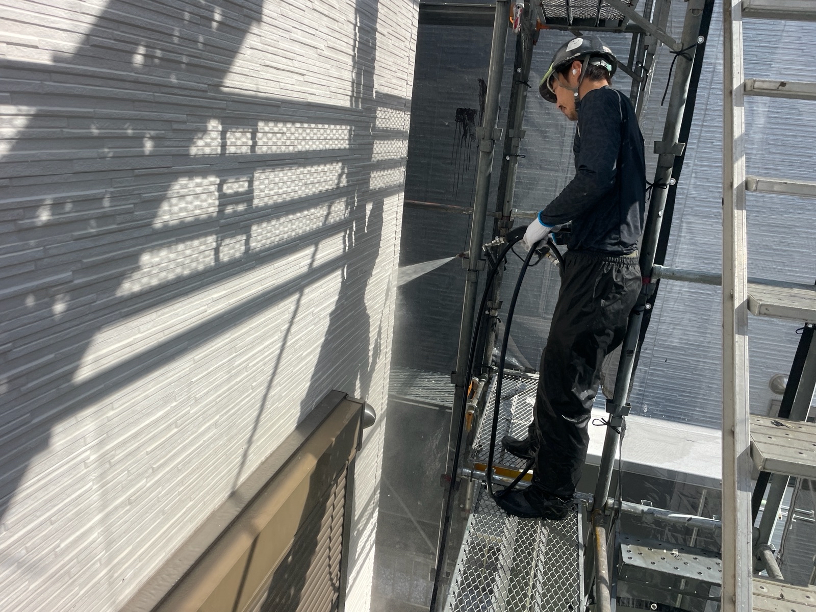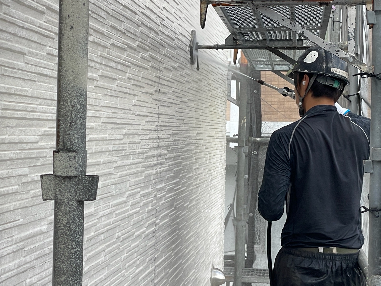 本日は、高圧洗浄とシーリングの撤去をさせて頂いております。