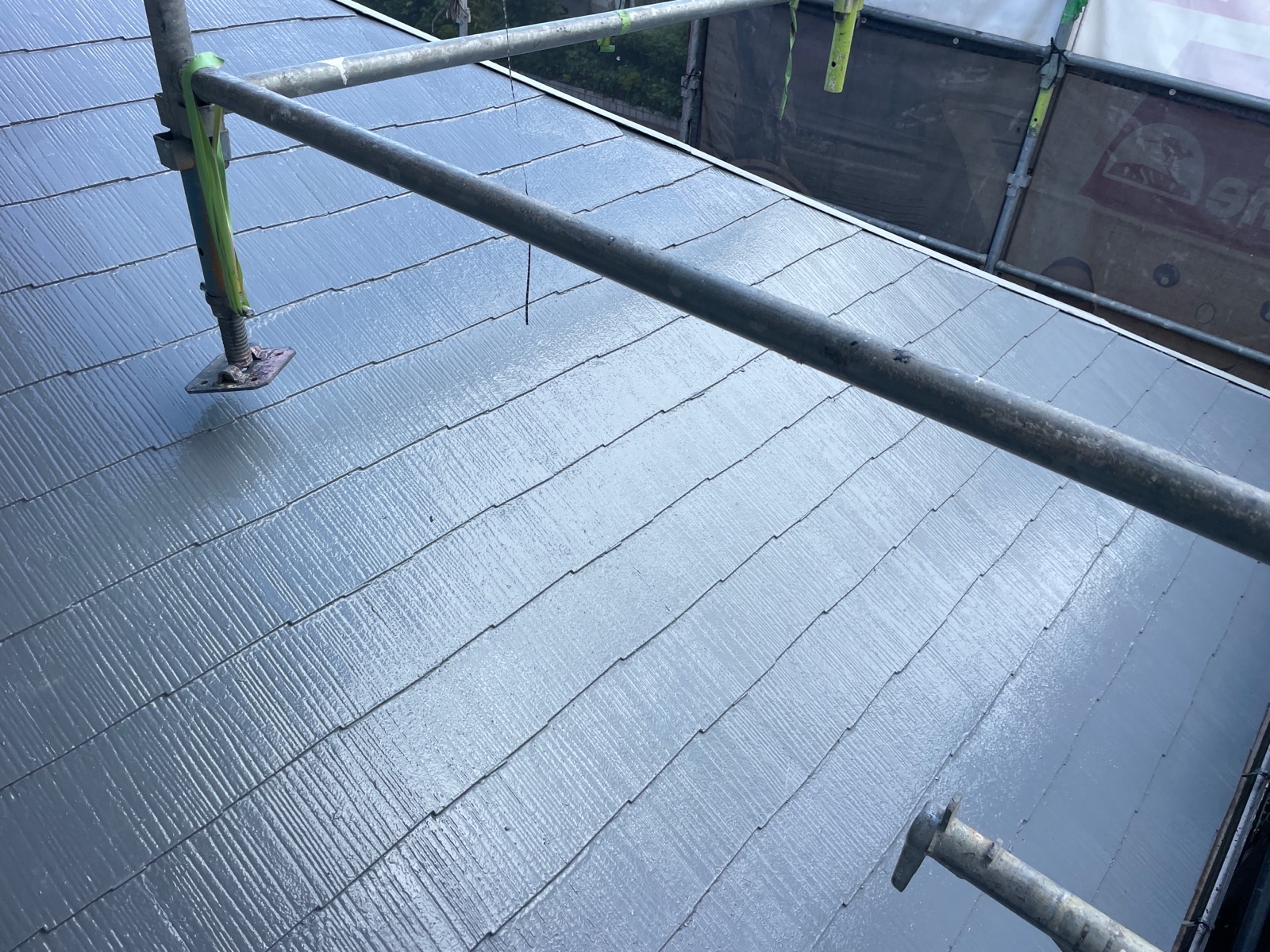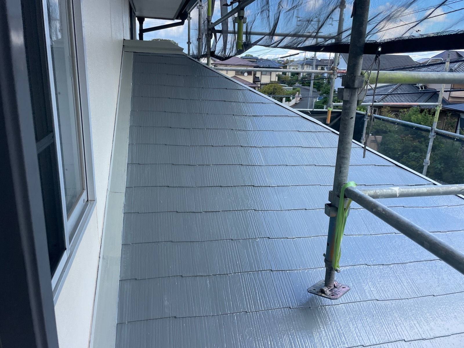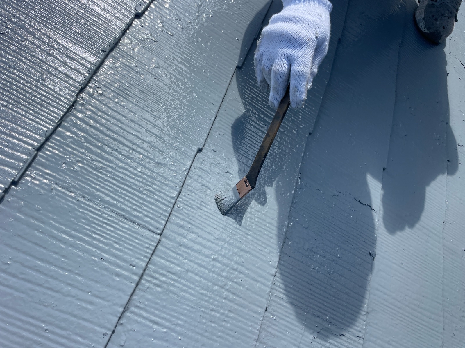 本日は、屋根の下塗り2回目・中間検査、基礎塗装等をさせて頂いております。