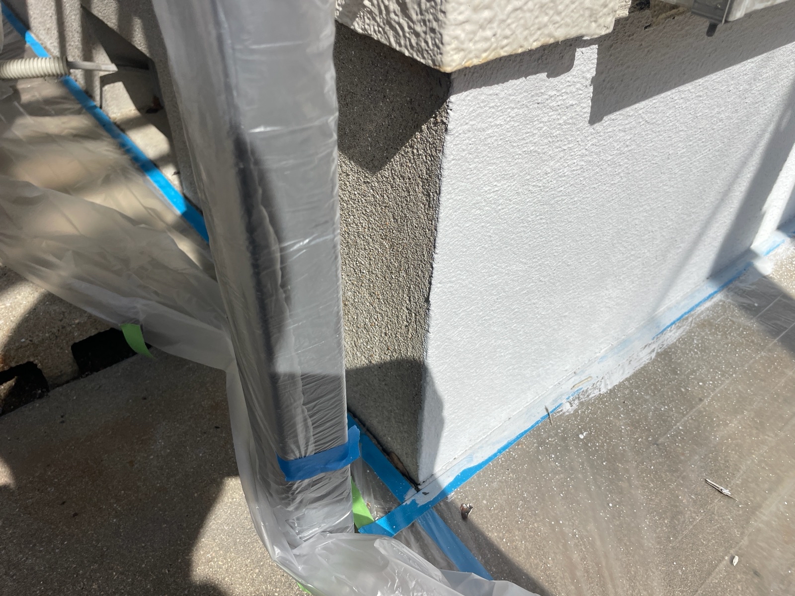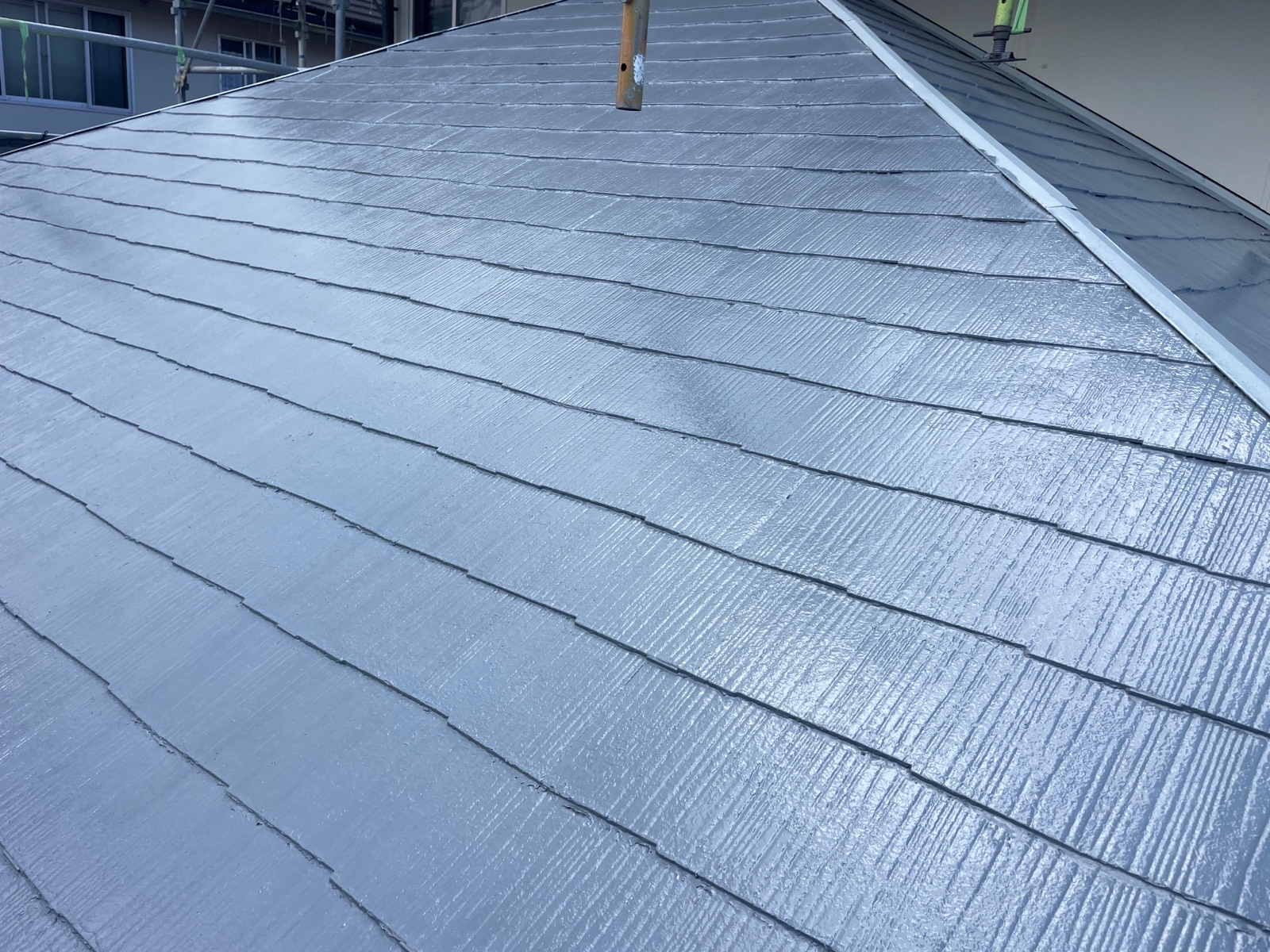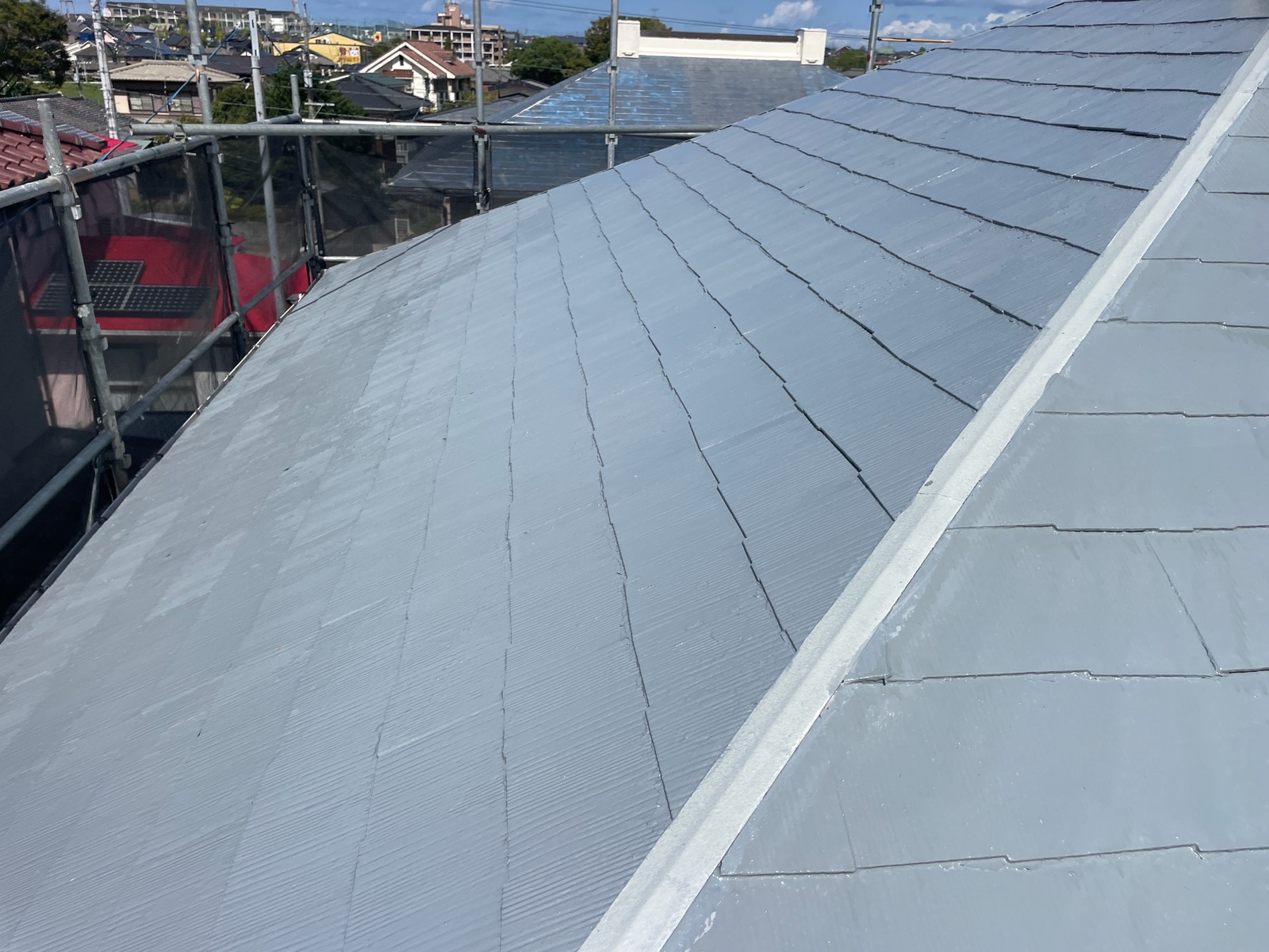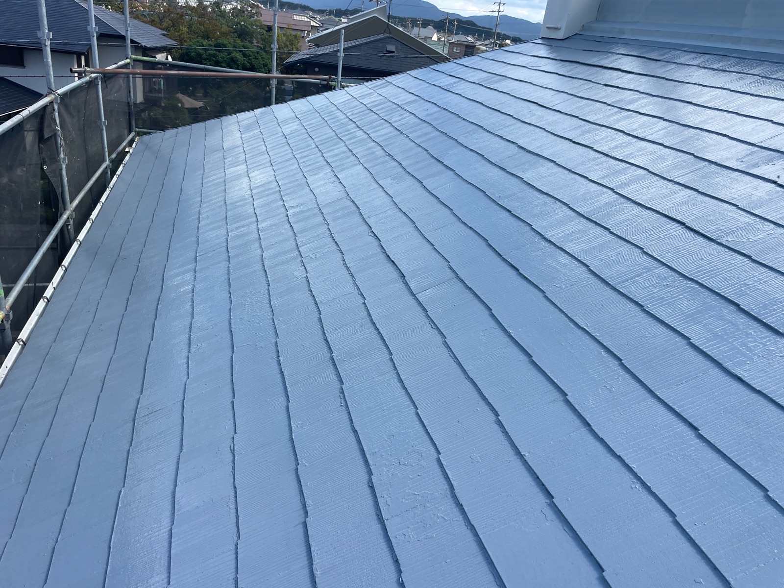 本日は、屋根の下塗り2回目・中間検査、基礎塗装等をさせて頂いております。