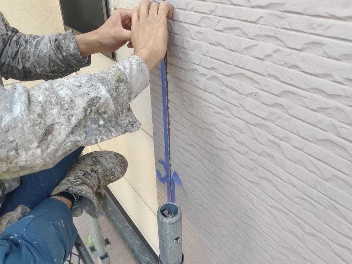既存撤去⇒清掃⇒養生⇒プライマー⇒シーリング打ち⇒ヘラ押さえ⇒養生撤去