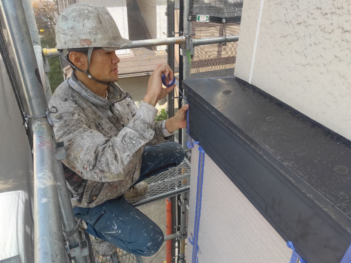 本日は幕板やサッシ廻り(ブラウン色部)のシーリングを行っております!
