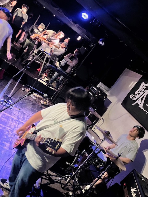 奥の方にいる肌色の楽器を持っているのが僕です。