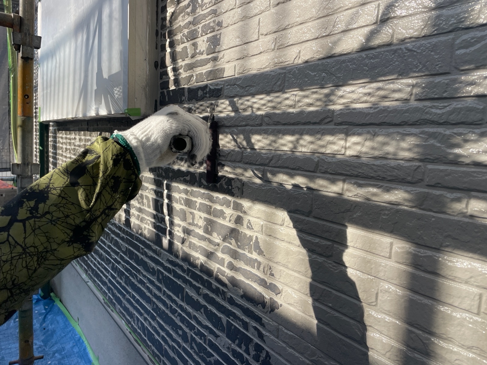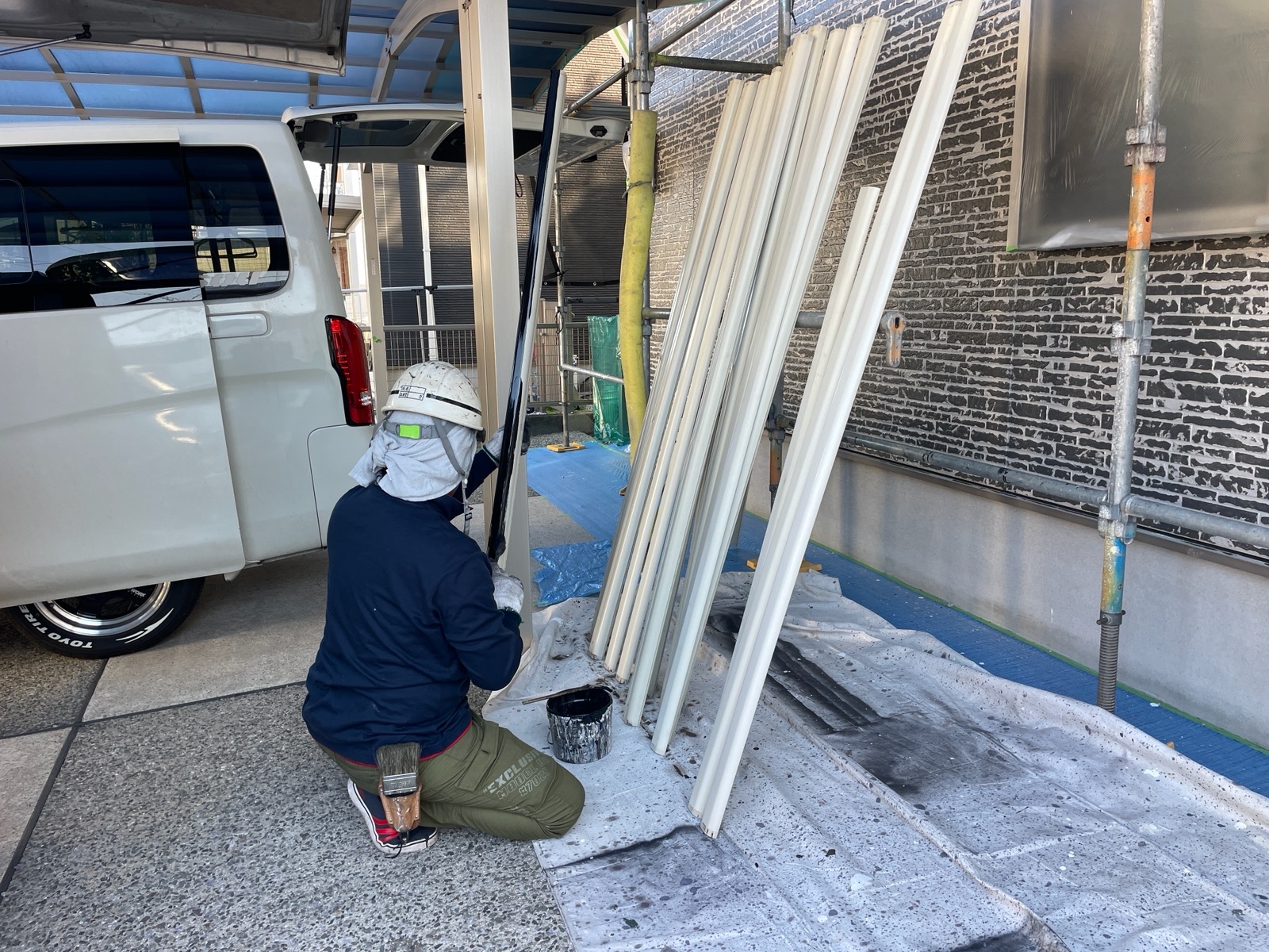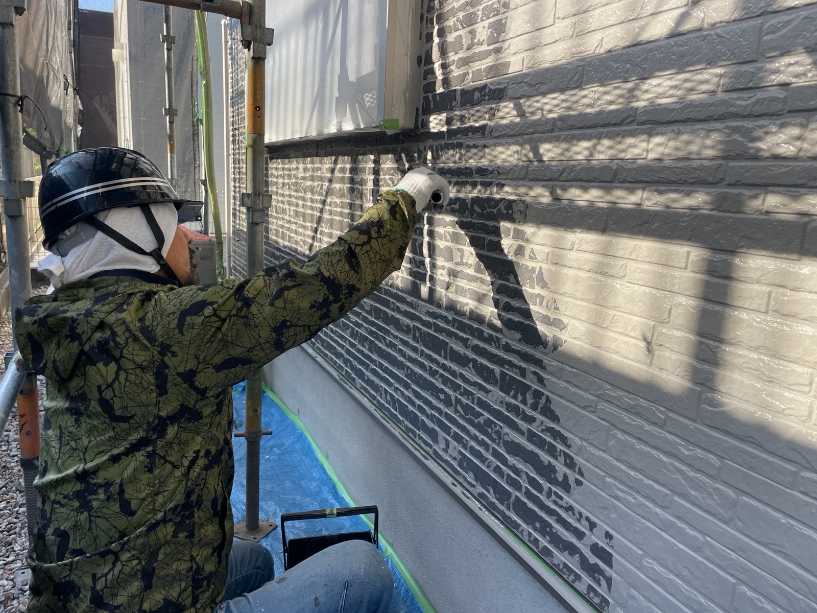 本日は、外壁トップ1回目~2回目(途中まで)、屋根中間検査~屋根上塗り1回目、付帯部塗装をさせて頂いております。