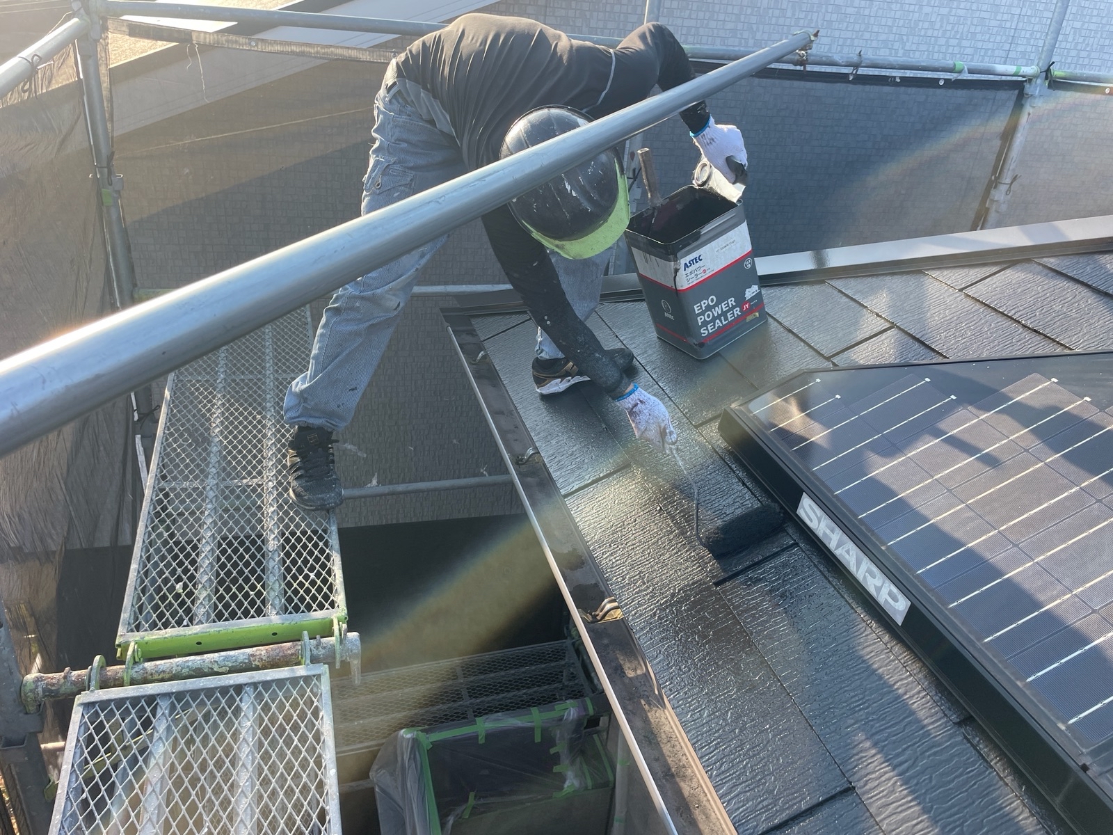 本日は、屋根の上塗り2回目と養生をさせて頂いております。
