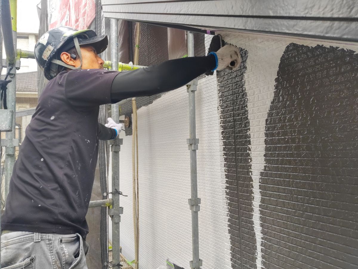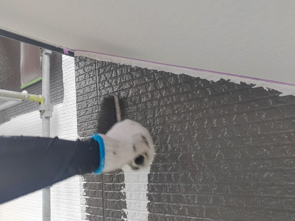 本日は、外壁上塗り1回目などをさせて頂いております。