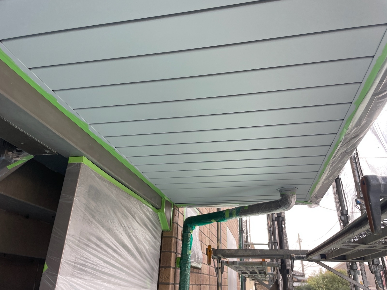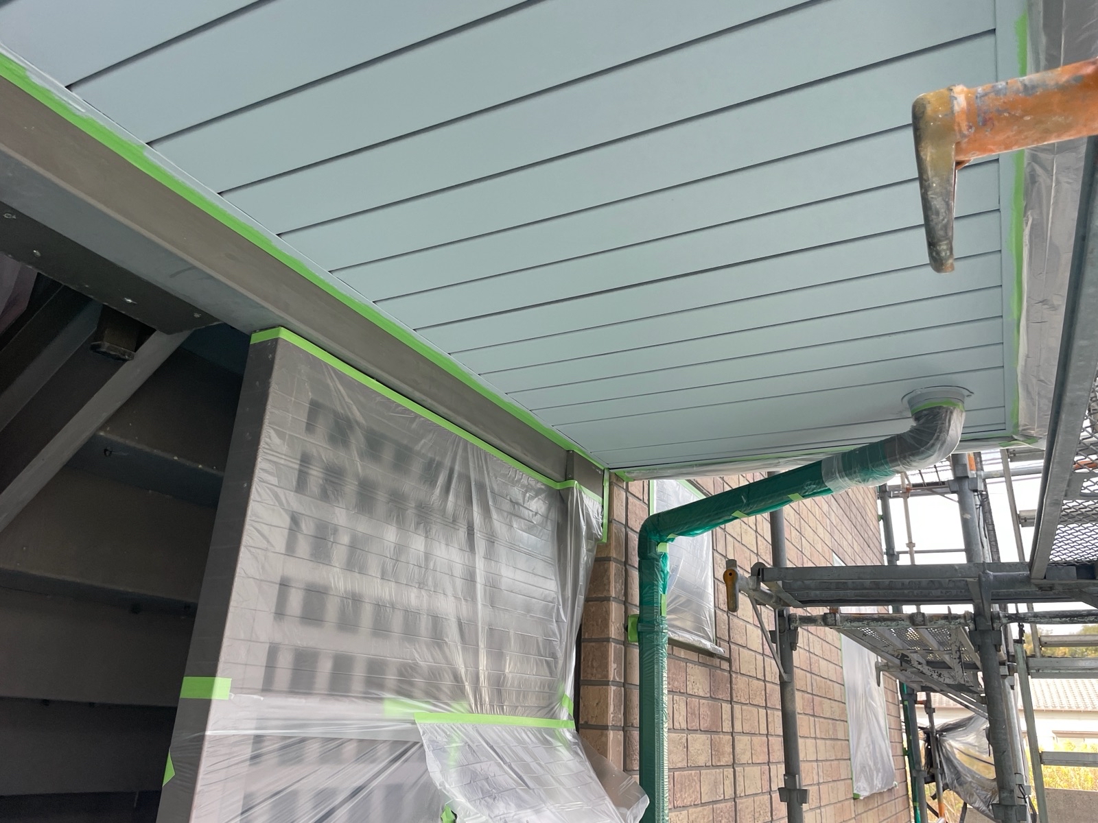 鉄部に錆止めを行い、屋根には下塗り1回目を塗布しております!