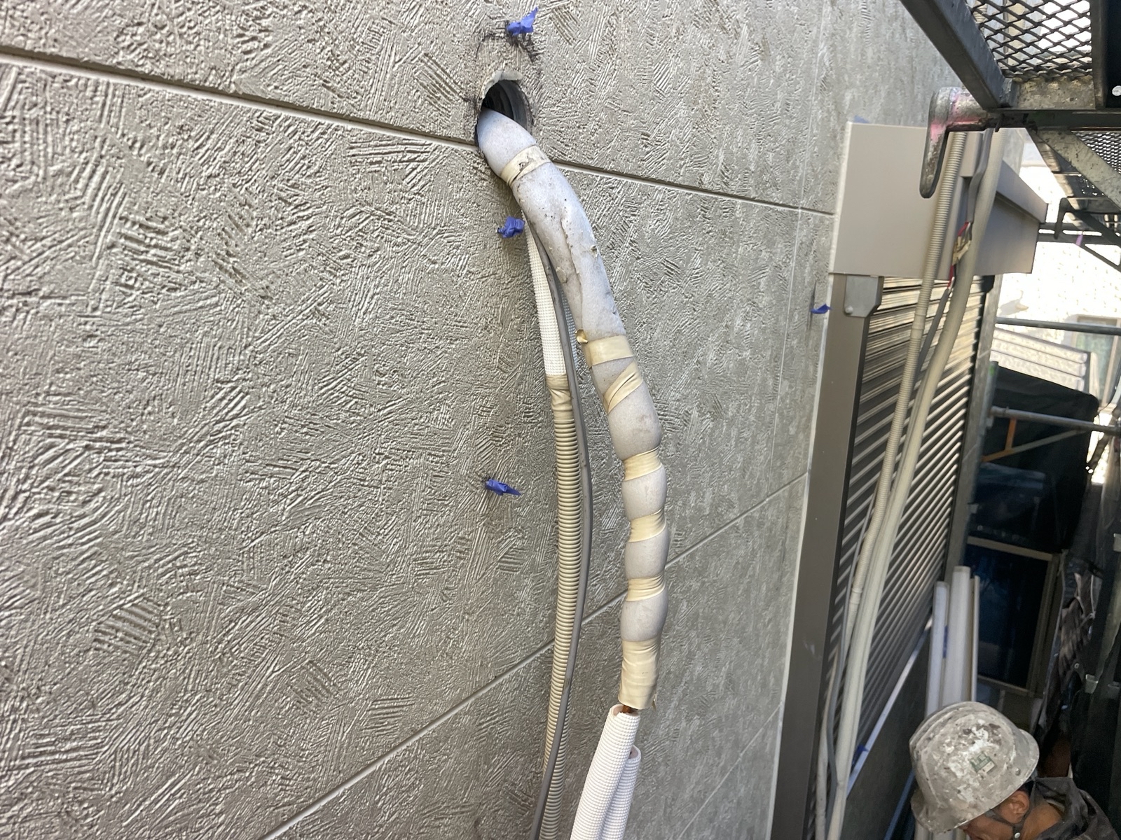 塗装後に室外機の撤去がされた際に、外壁が塗られていないという事を防ぐためです!