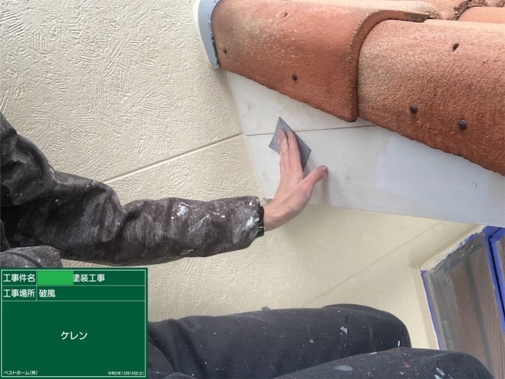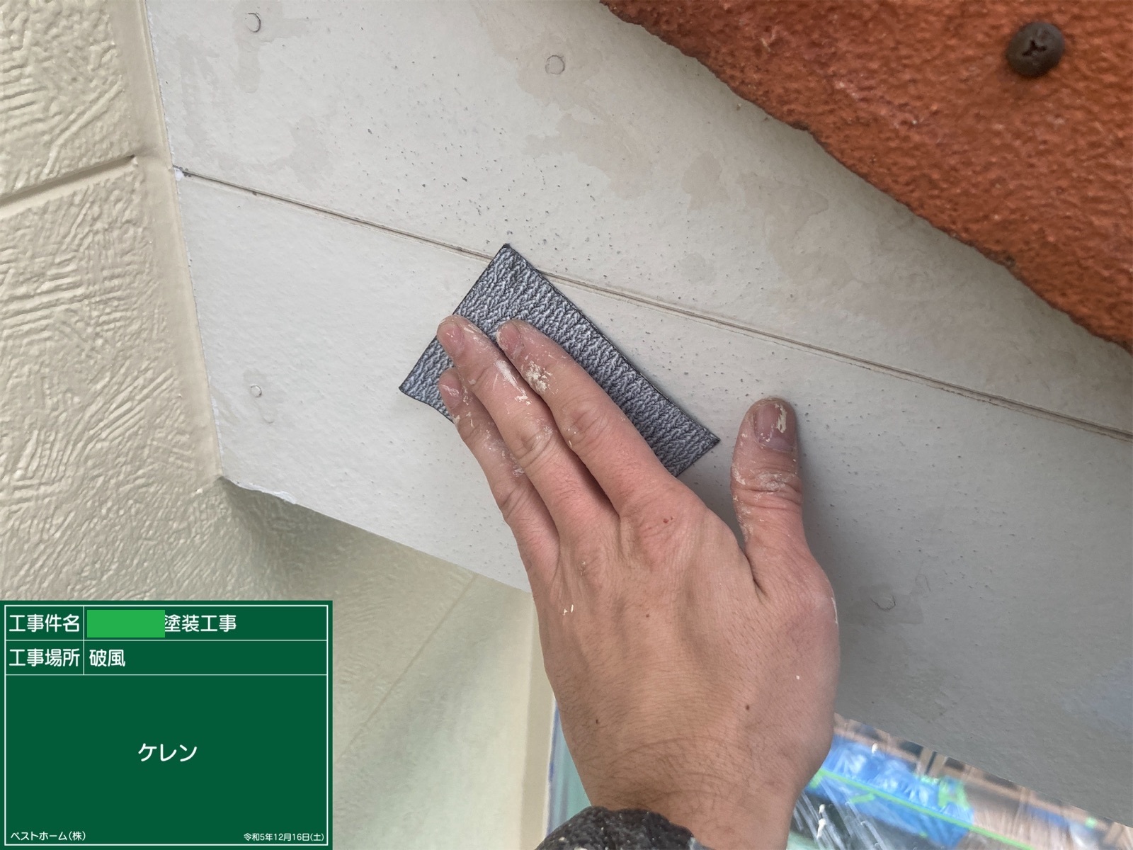 本日は、外壁上塗り2回目、ケレン作業をさせて頂いております。