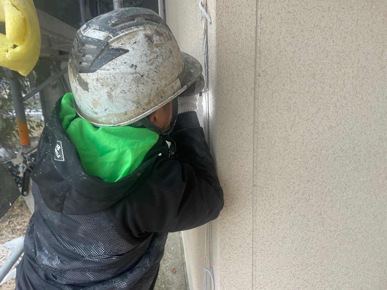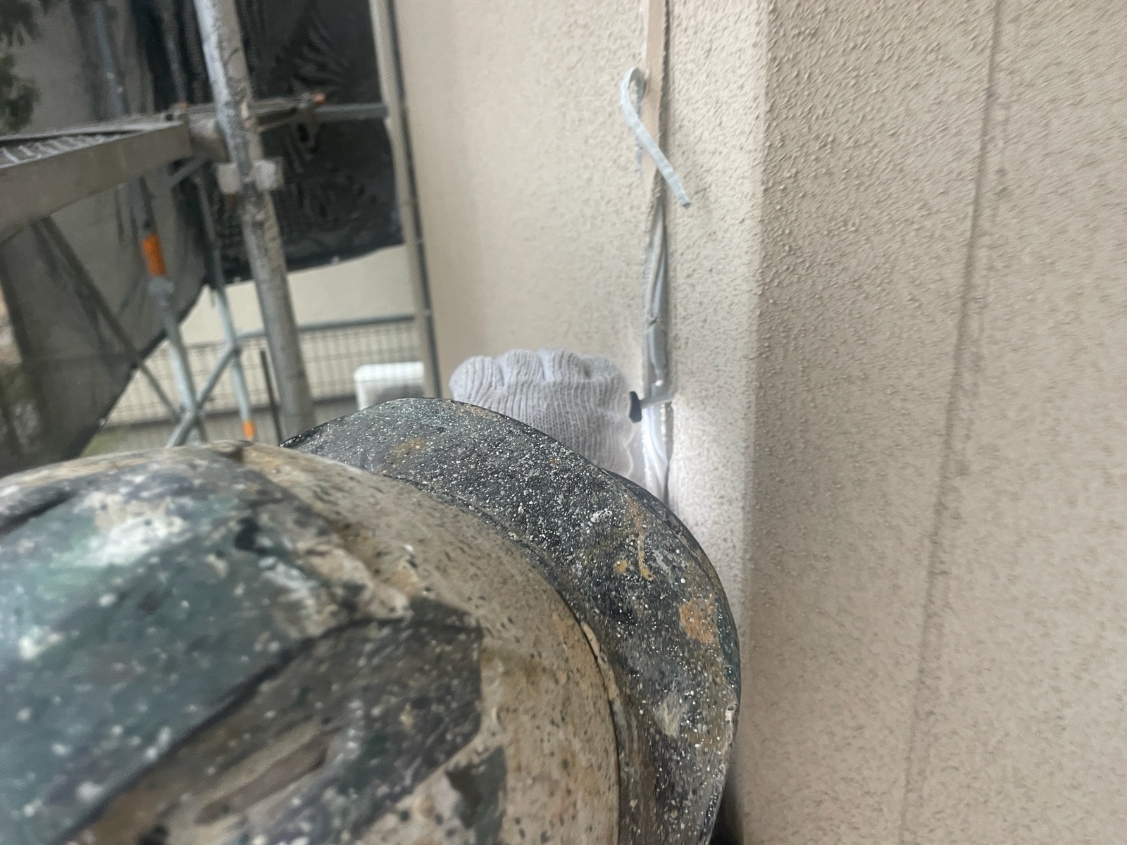 リシン仕上げの外壁の場合は、ボードシーリングは撤去しないこともありますが、