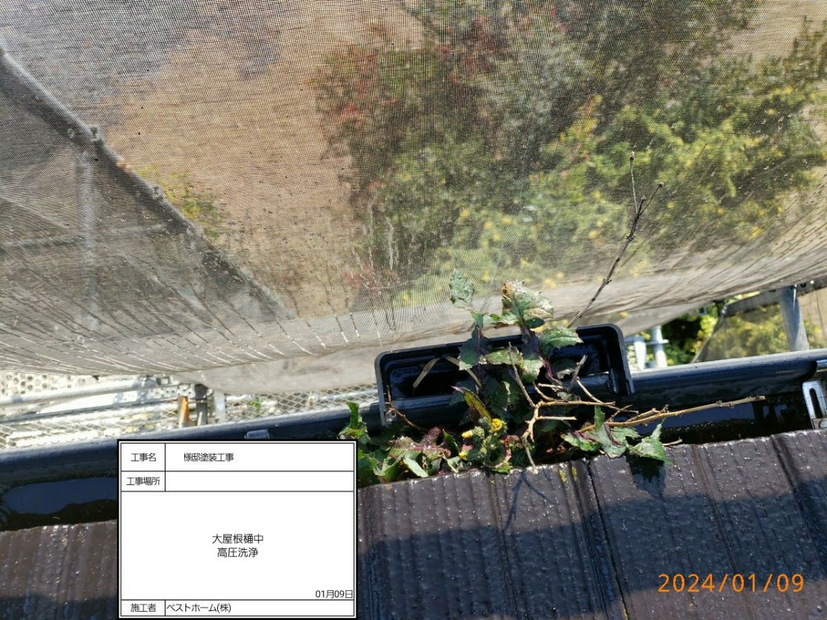 樋の中に砂や草が溜まっており、立派な木が生えかけておりました!